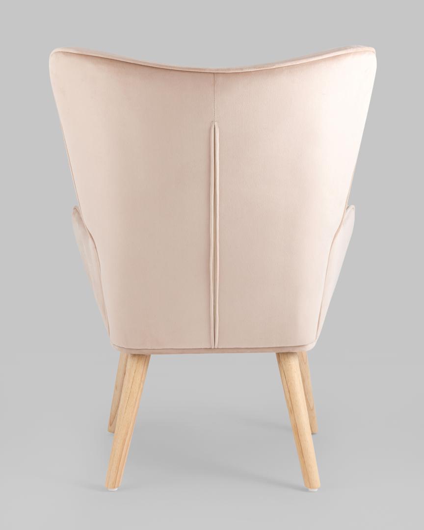 Кресло Хью бежевый обивка велюр с ножки массив дерева