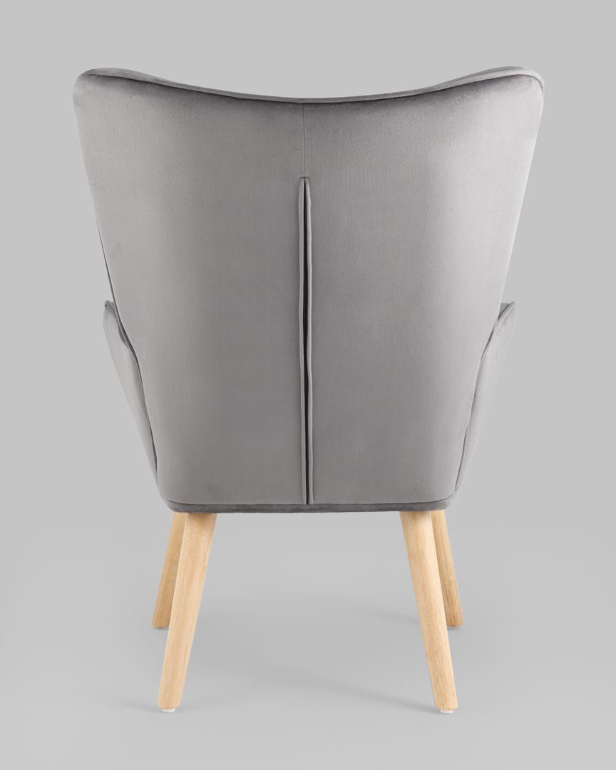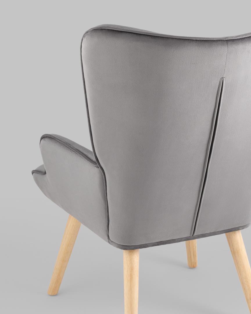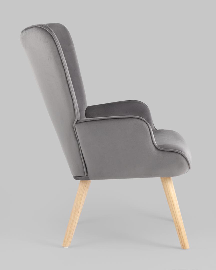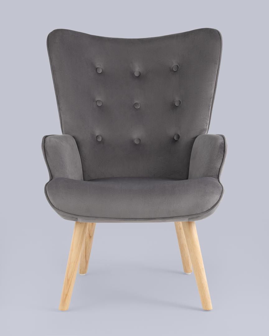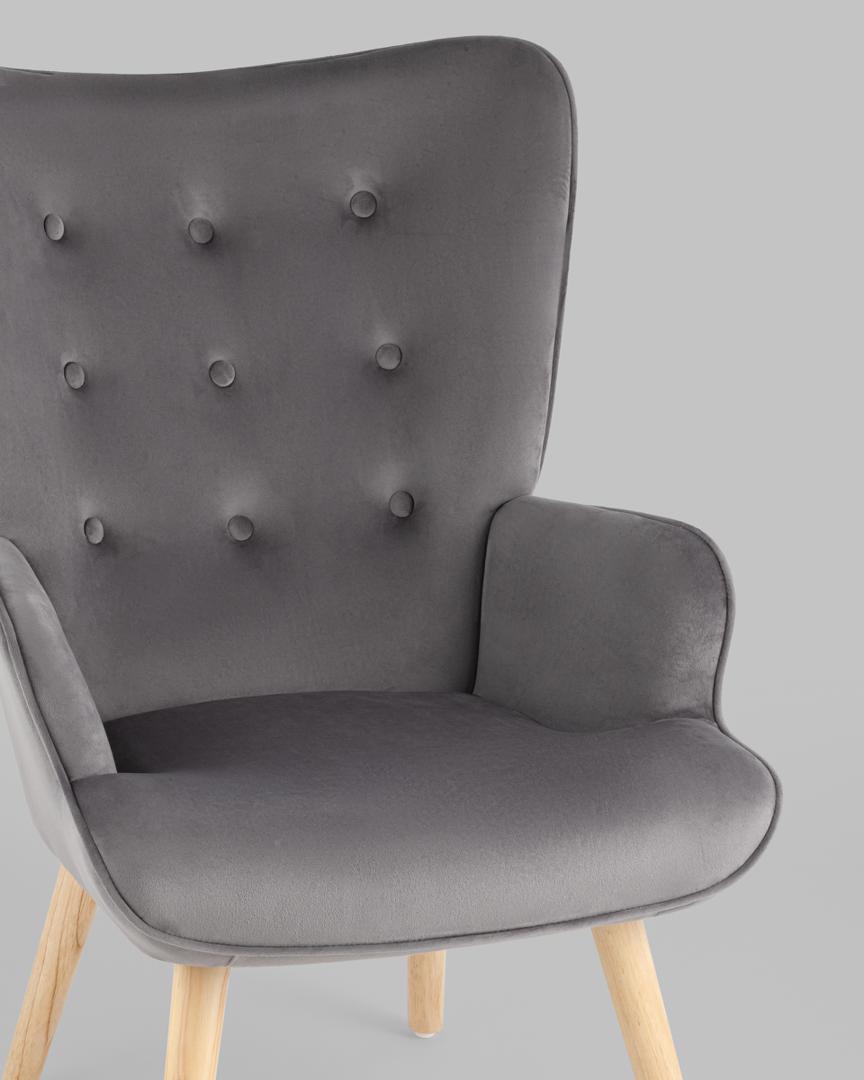Кресло Хью серый обивка велюр с ножки массив дерева