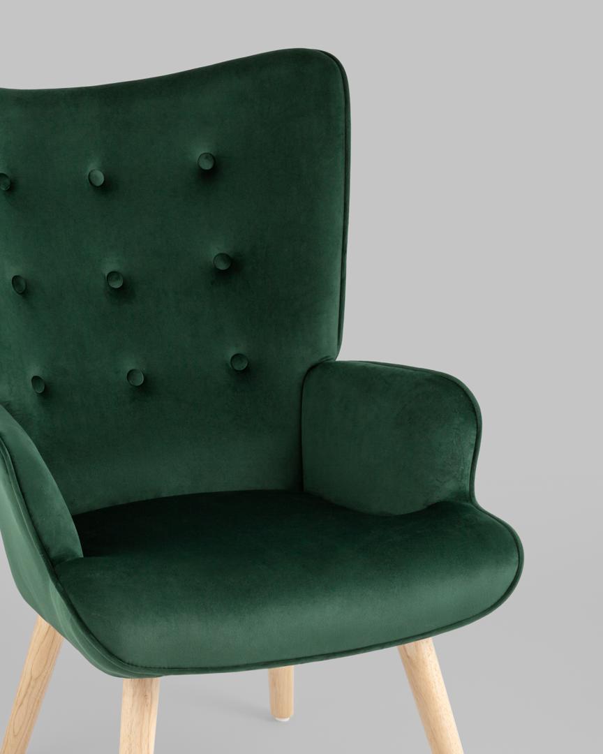 Кресло Хью тёмно-зеленый обивка велюр с ножки массив дерева