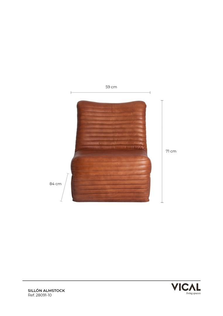 Кресло Almstock, коричневое, винтажное. Изготовлен из кожи, комбинированной с железом.