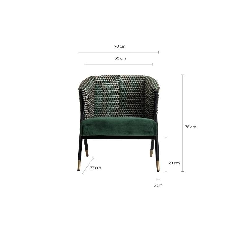 Кресло Kelheim от дома VICAL — это выражение современности. Это современное бархатное кресло размером 73x83x80 см сочетает в себе мягкость зеленого бархата с прочностью соснового дерева, предлагая роскошное сиденье, которое одновременно радует глаз и обеспечивает непревзойденный комфорт.