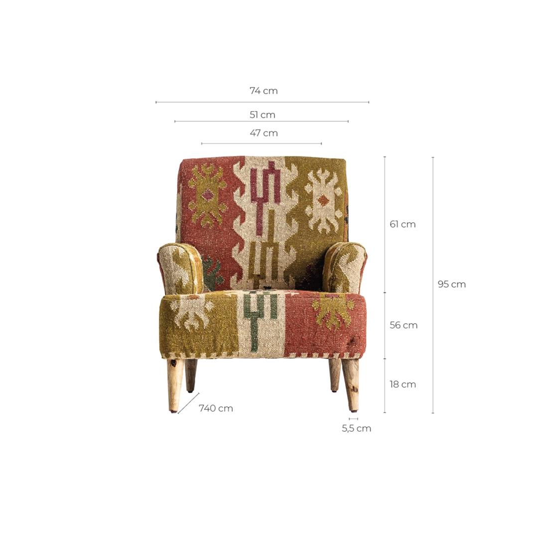 Кресло SVETA от дома VICAL размером 82х90х91см – олицетворение тепла и уюта. Это тканевое кресло, изготовленное из дерева манго и обитое джутом с дизайном Killim в светлых тонах, идеально подходит для тех, кто ищет спокойное пространство. Его прочная конструкция гарантирует долговечность и стиль в каждой детали.