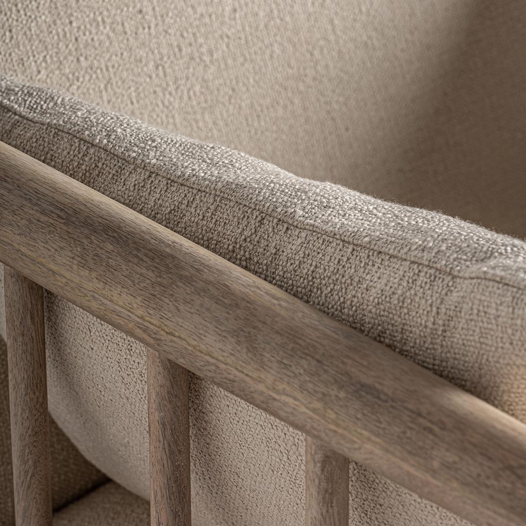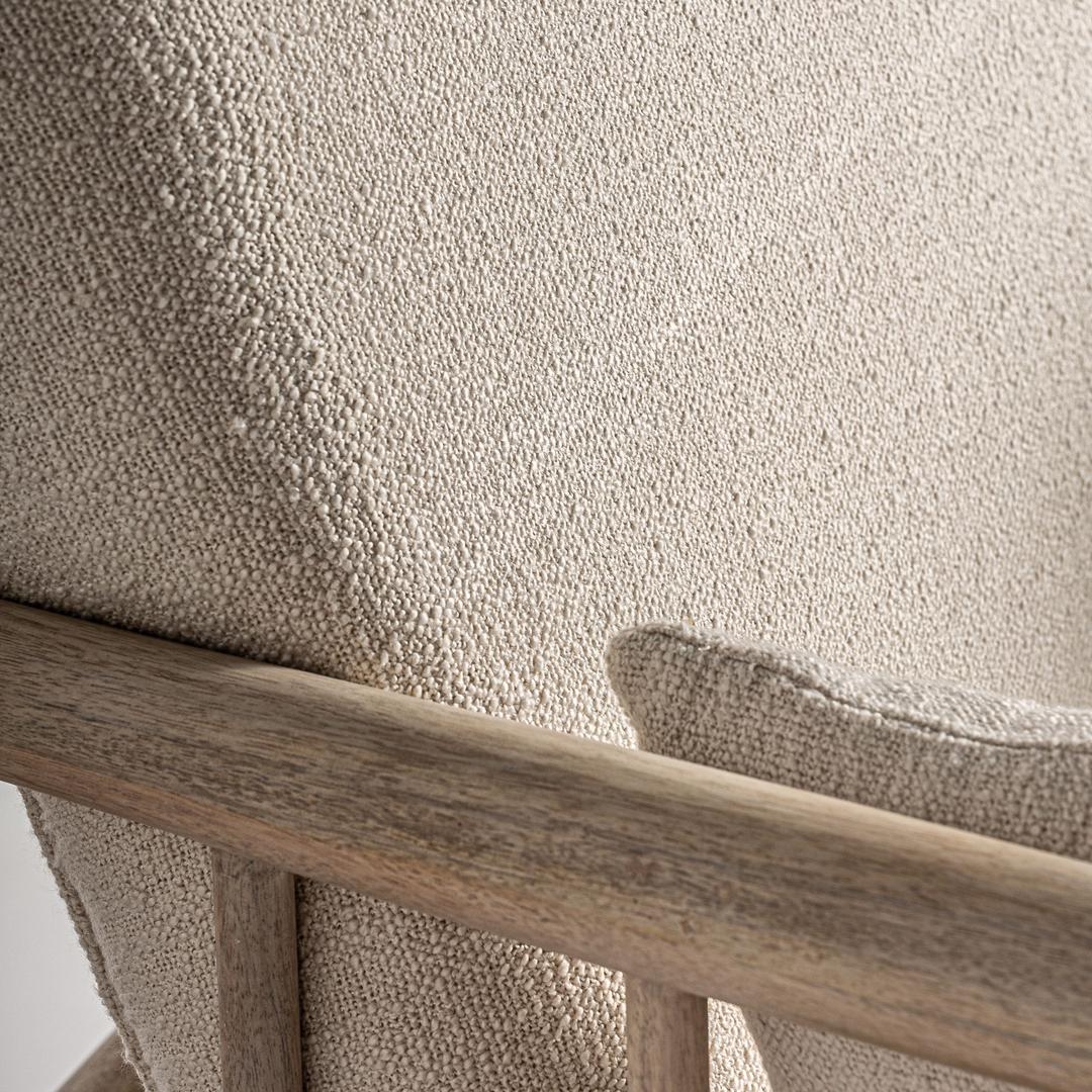 Кресло Grebin в современном стиле, изготовлено из березовой древесины кремового цвета в сочетании с хлопком. Съемное изделие.