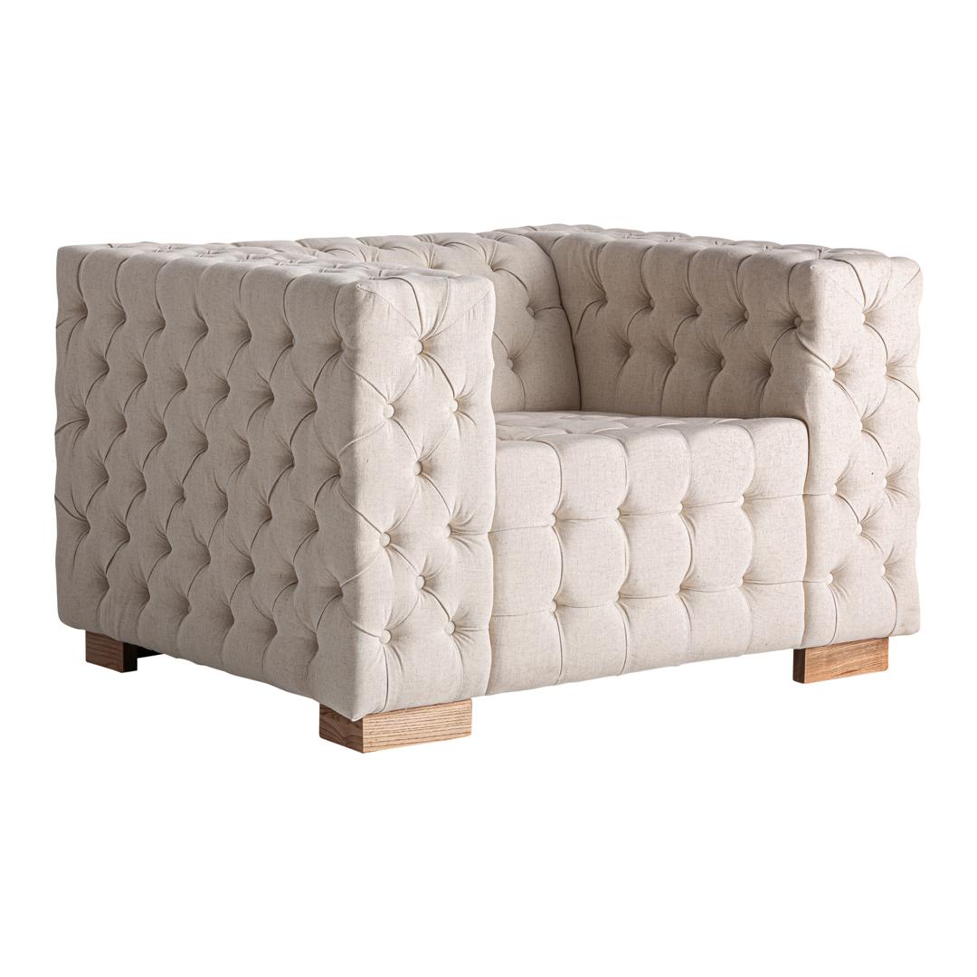 Кресло Genhof в классическом стиле, изготовлено из коричневого ясеня в сочетании с бежевым бархатом. Изделие разборное. Ширина: 118 см, Глубина: 92 см, Высота: 72 см