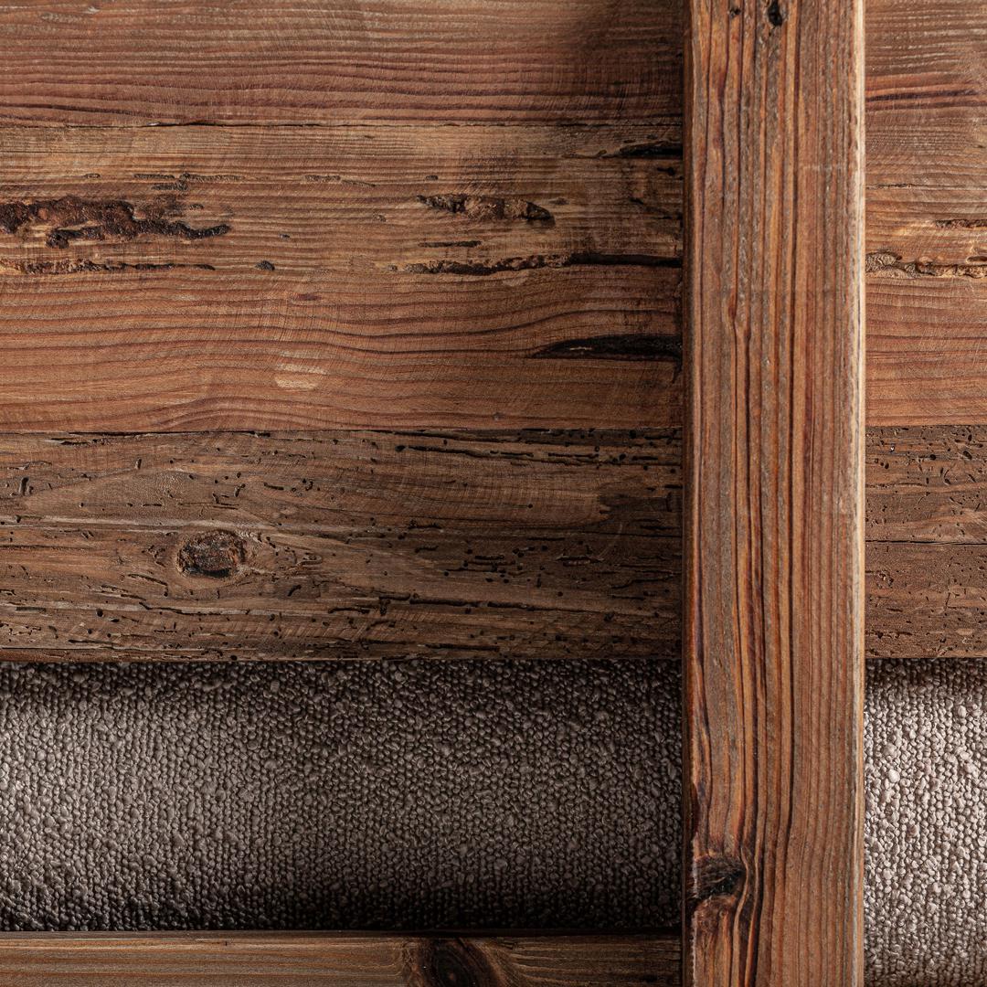 Кресло Givry, натурального цвета, современный стиль. Изготовлен из переработанной сосновой древесины в сочетании с полиэстером и пеной.