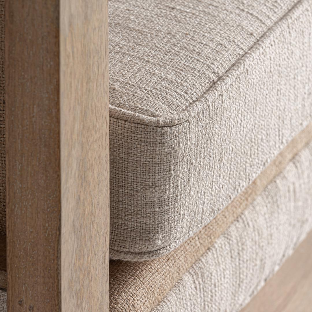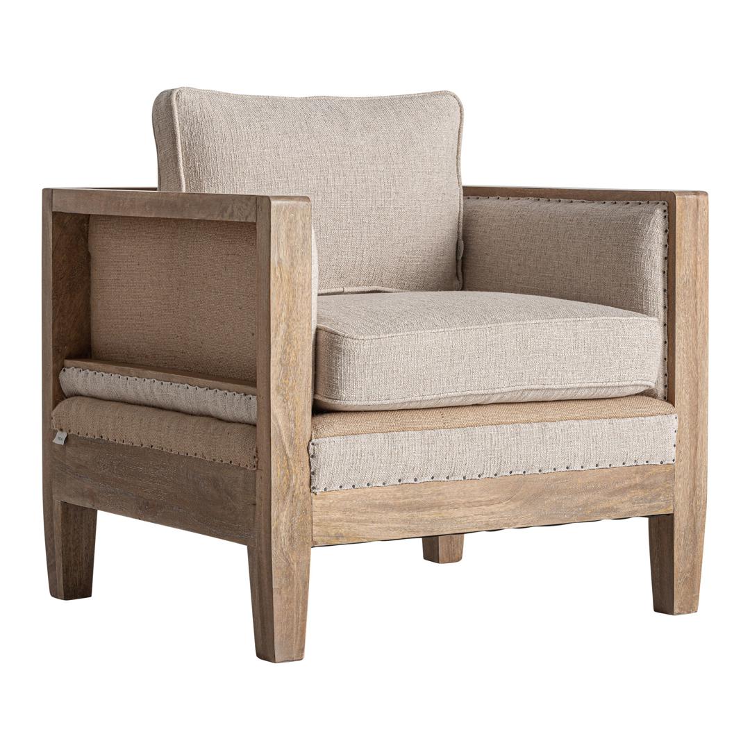 Кресло Grube в классическом стиле, изготовлено из берёзы коричневого цвета в сочетании с бежевым льном и джутом. Чехол съёмный. Ширина: 80 см, Глубина: 74 см, Высота: 87 см