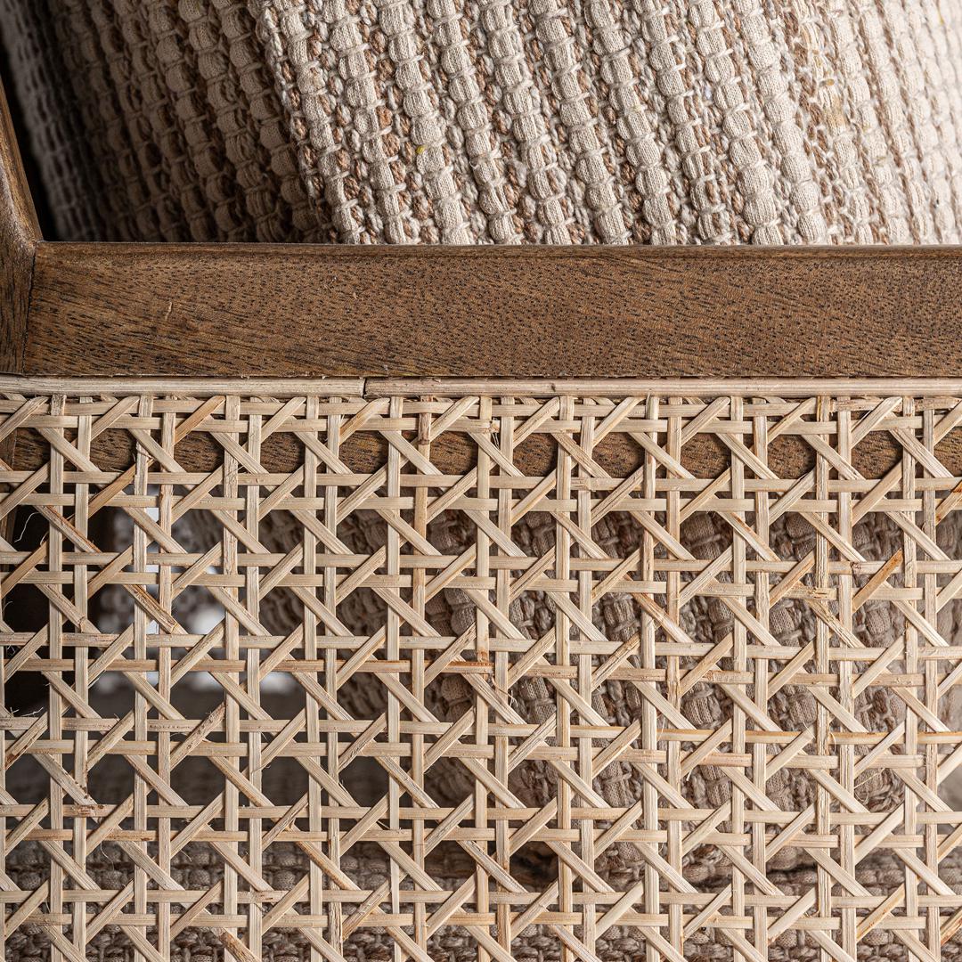 Классическое и самобытное кресло Romarand сочетает в себе элегантность коричневого мангового дерева с натуральностью плетёного дерева и мягкостью бежевой обивки. Это кресло навевает ощущение покоя, тишины и уюта, пропитанного историей. Ширина: 68 см, Глубина: 77 см, Высота: 88 см
