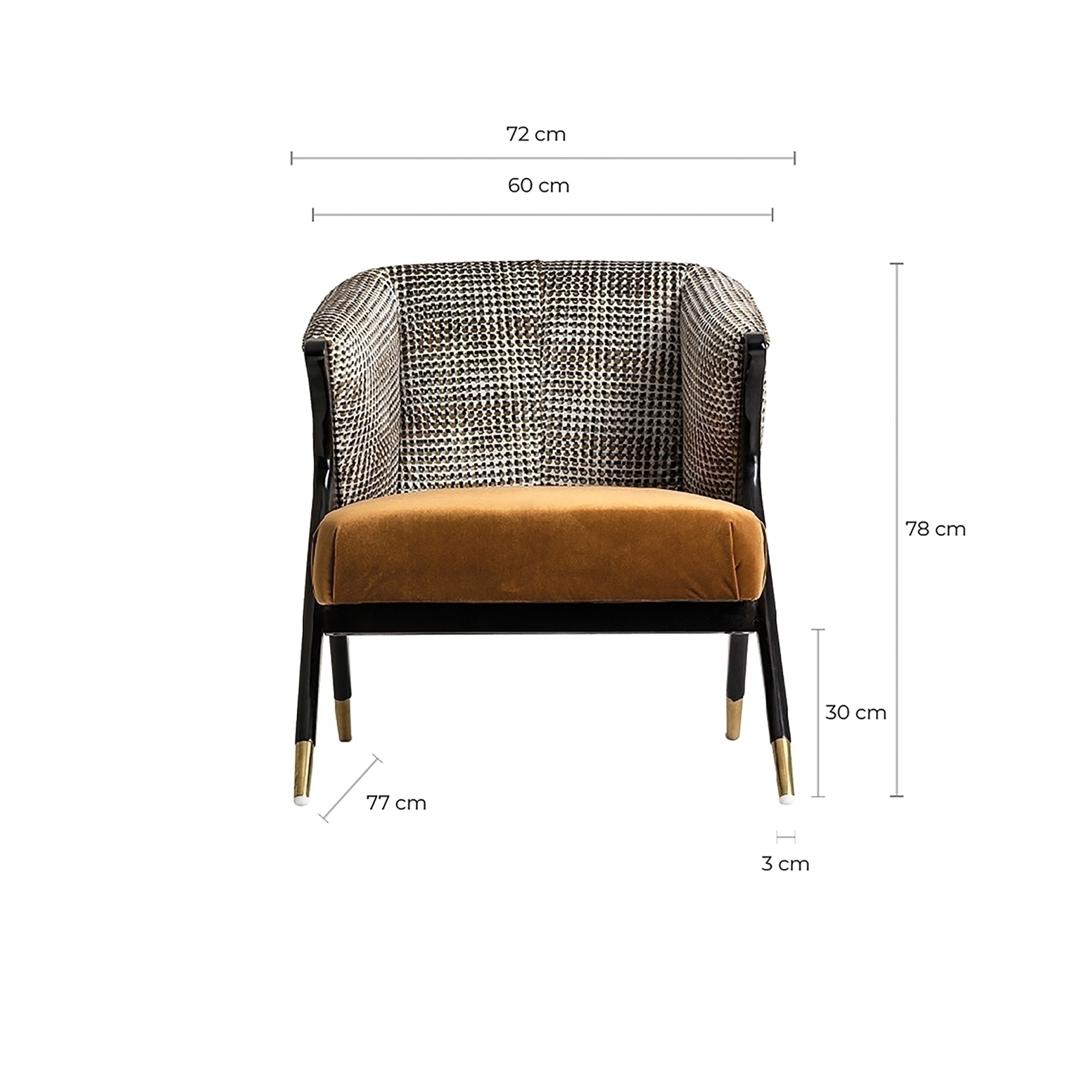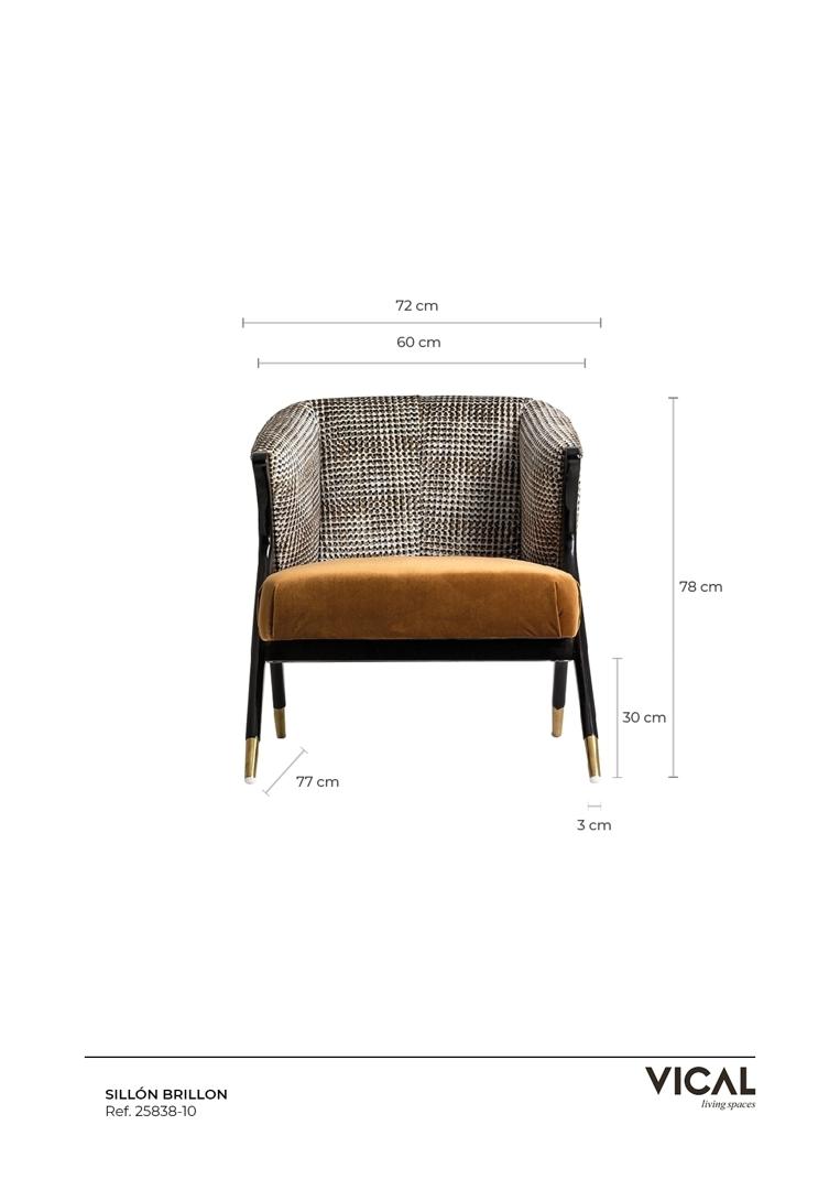 VICAL home представляет кресло Brillon, предмет мебели, который выделяется своим комфортом и роскошным дизайном. При размерах 73x83x80 см в этом кресле используется сосновое дерево и мягкий бархат в характерном цвете охры, обеспечивая изысканную эстетику и исключительный комфорт, который обогатит любую гостиную.
