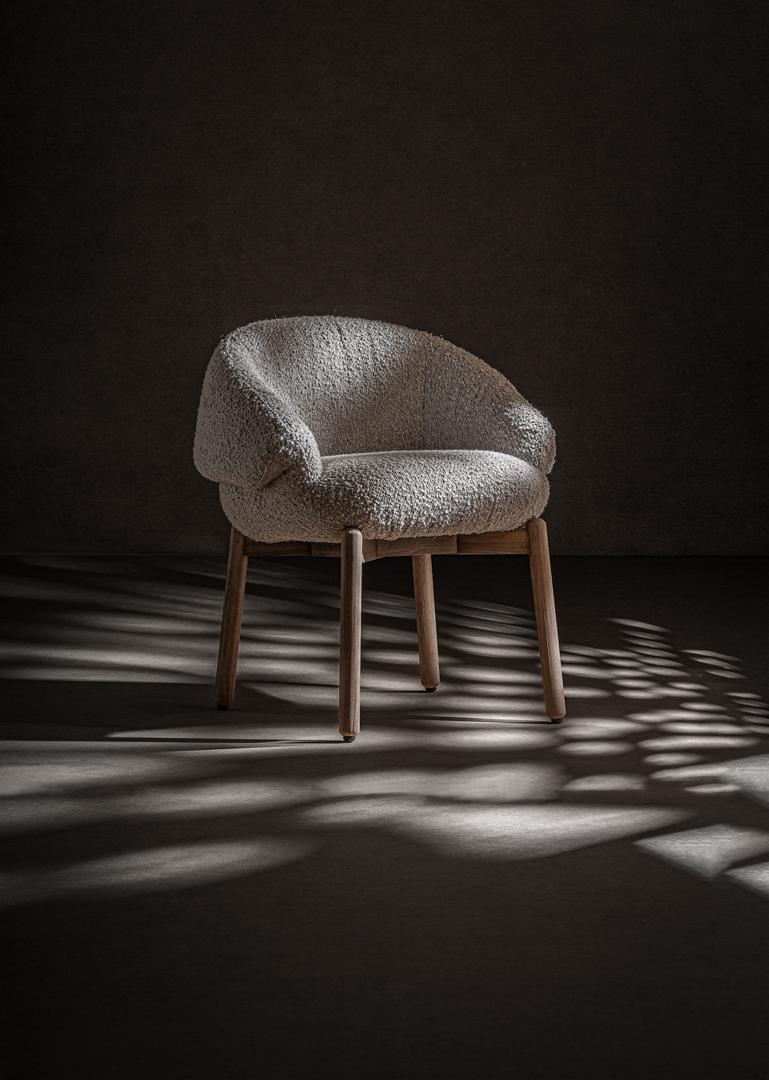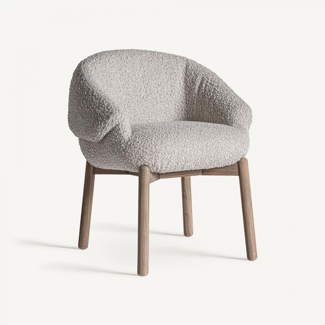 Jacquard стул, изготовленный из древесины коричневого дуба в сочетании с серым полиэстером.