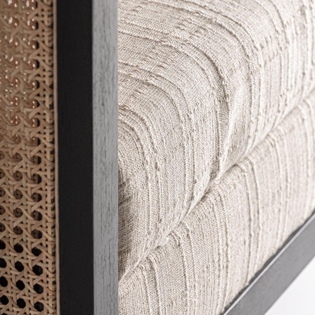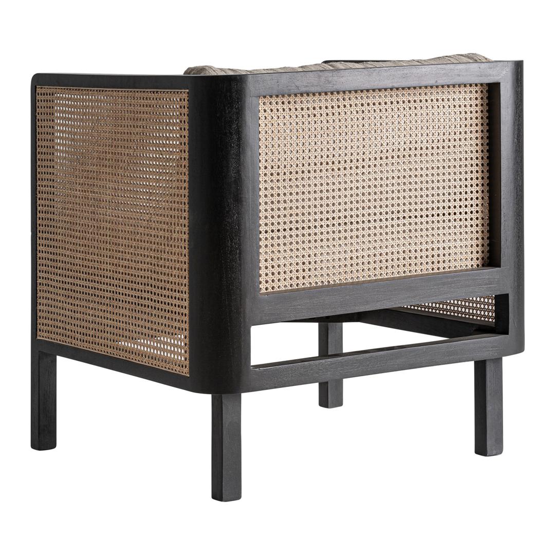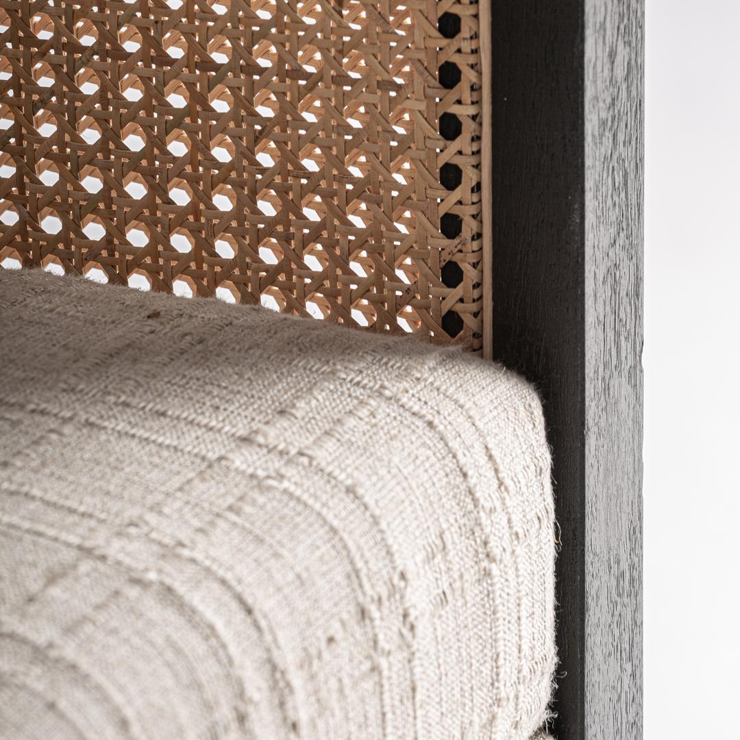 Кресло Kaleb от VICAL сочетает в себе естественную теплоту древесины манго с легкостью кремовой ткани. Его черный каркас элегантно обрамляет сетчатое плетение, создавая игру текстур, располагающую к расслаблению. Это изделие, сочетающее в себе современность и мастерство, идеально подходит для проектов, стремящихся к спокойствию и современному характеру. Ширина: 73 см, Глубина: 73 см, Высота: 77 см