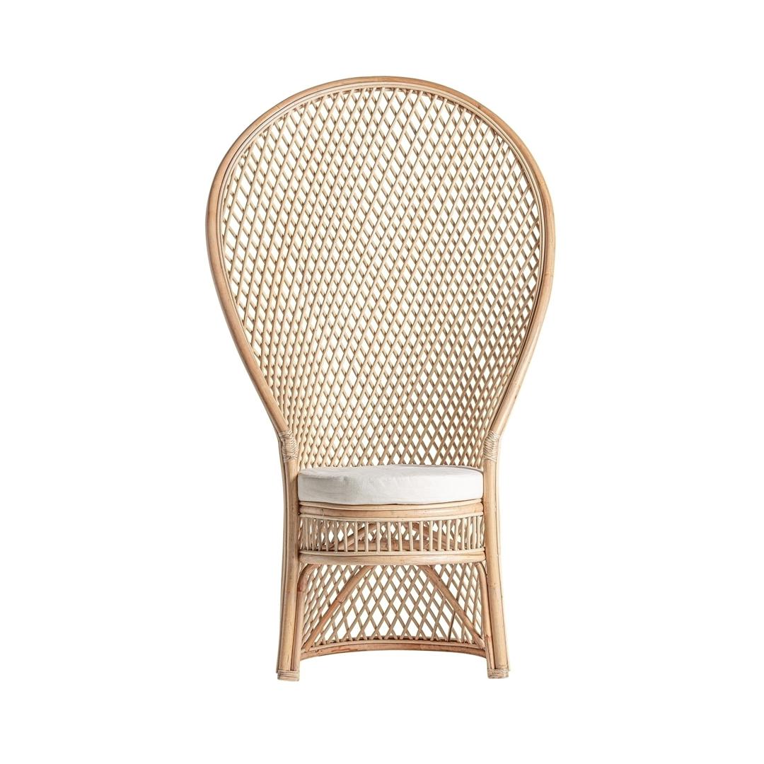 Кресло Peacock в стиле бохо, изготовлено из светло-коричневого ротанга. Ширина: 94 см, Глубина: 70 см, Высота: 162 см