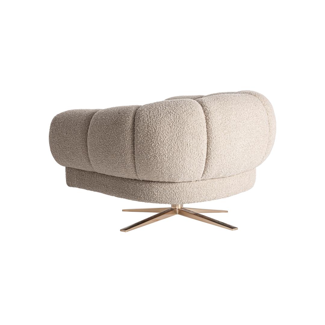 Кресло Elise в стиле ар-деко, изготовлено из полиэстера бежевого цвета с пятнистой отделкой в сочетании со сталью и поролоном медного цвета. Ширина: 95 см, Глубина: 84 см, Высота: 63 см