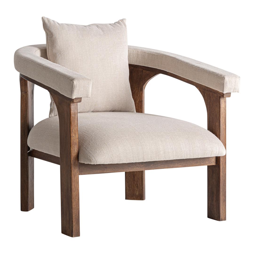 Стул Racoud, коричнево-бежевый, современный стиль. Изготовлен из древесины манго в сочетании с древесиной DM и полиэстером. Съемное изделие.