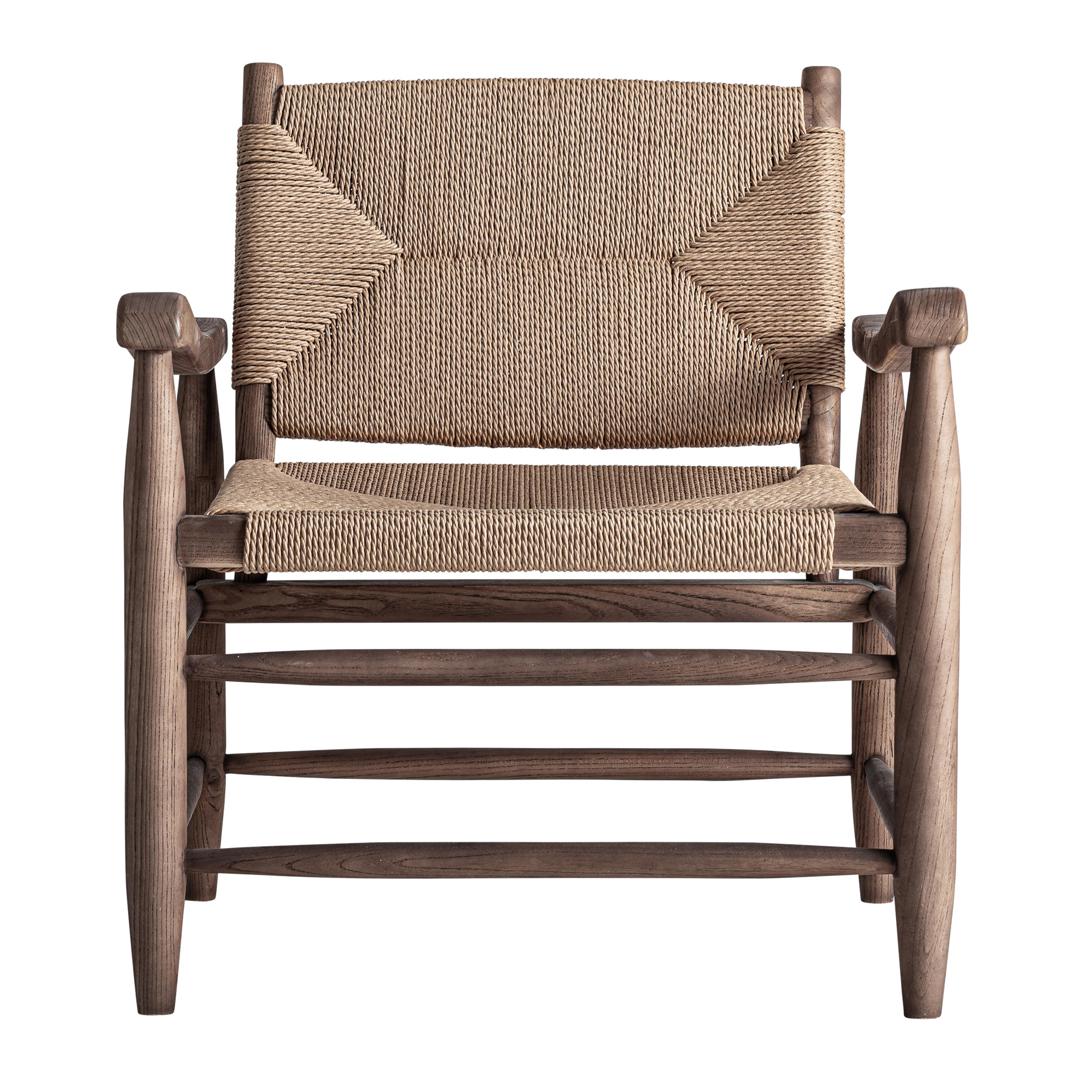 Кресло, изготовленное из каучукового дерева коричневого цвета, в сочетании с веревкой светло-коричневого цвета. Ширина: 66 см, Глубина: 74 см, Высота: 72 см