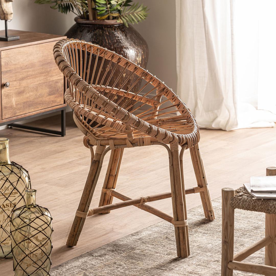 Естественная легкость. Современное кресло Chilaw изготовлено из коричневого ротанга. Его округлая форма делает его идеальным дополнением для уютных уголков отдыха. Ширина: 74 см, Глубина: 61 см, Высота: 85 см