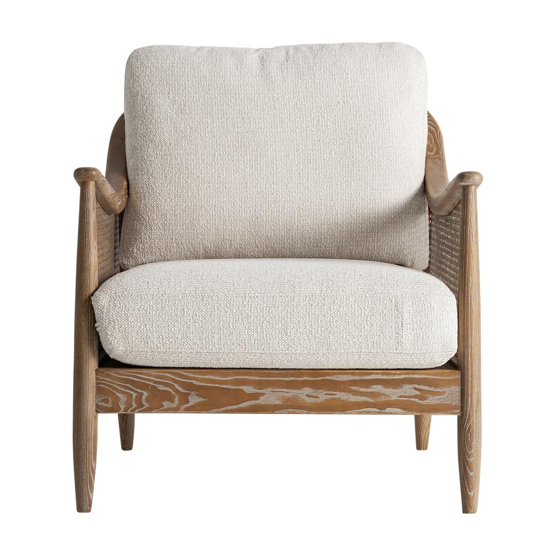 Кресло Ratheim в классическом стиле, изготовлено из полиэстера бежевого цвета в сочетании с коричневой древесиной ясеня и пенополиуретаном. Ширина: 74 см, Глубина: 84 см, Высота: 86 см