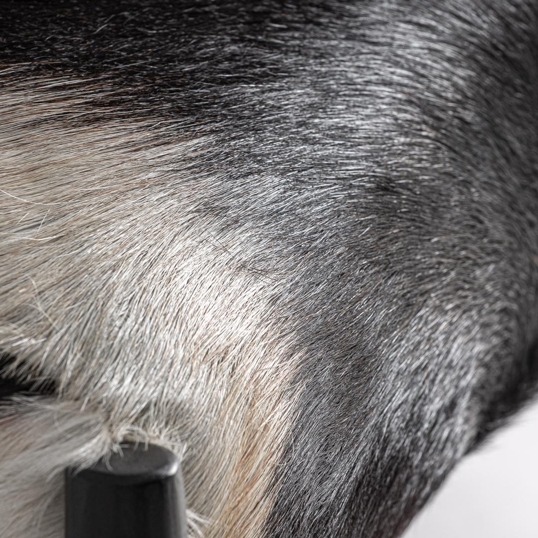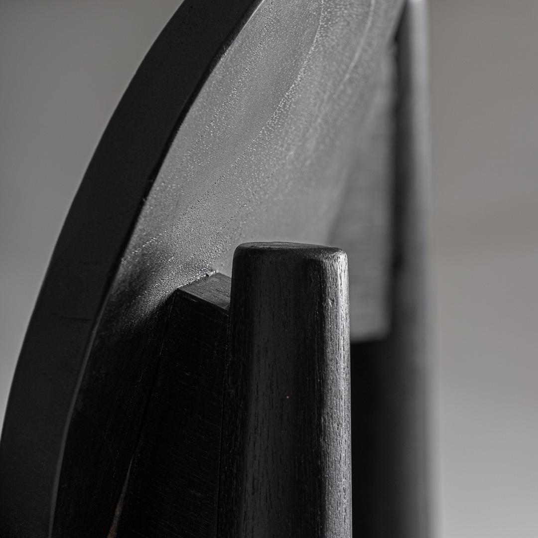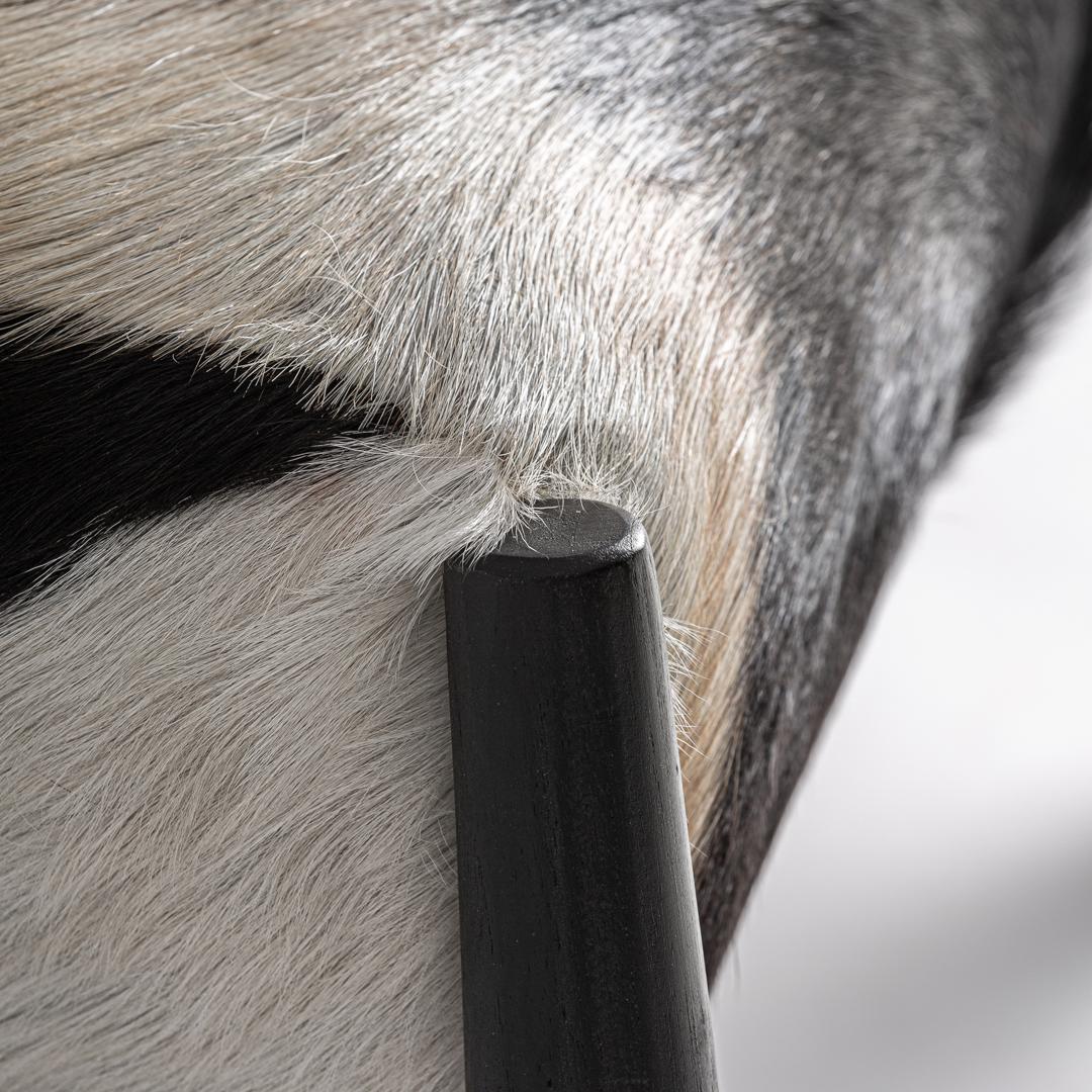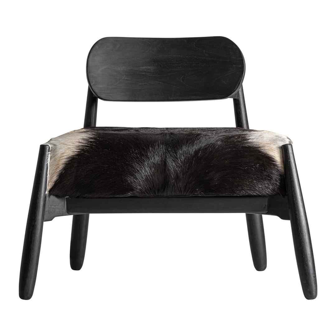 Кресло, изготовленное из черного тикового дерева в сочетании с черно-белой кожей. Ширина: 80 см, Глубина: 67 см, Высота: 71 см