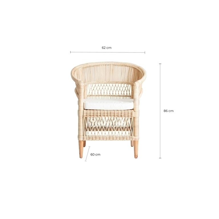 Кресло elna, натуральный цвет, современный стиль. Изготовлен из ротанга в сочетании с деревом минди и хлопком.