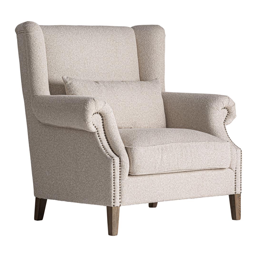 Кресло Leiston в классическом стиле, изготовлено из коричневого ясеня в сочетании с кремовым полиэстером. Изделие разборное. Ширина: 108 см, Глубина: 93 см, Высота: 109 см