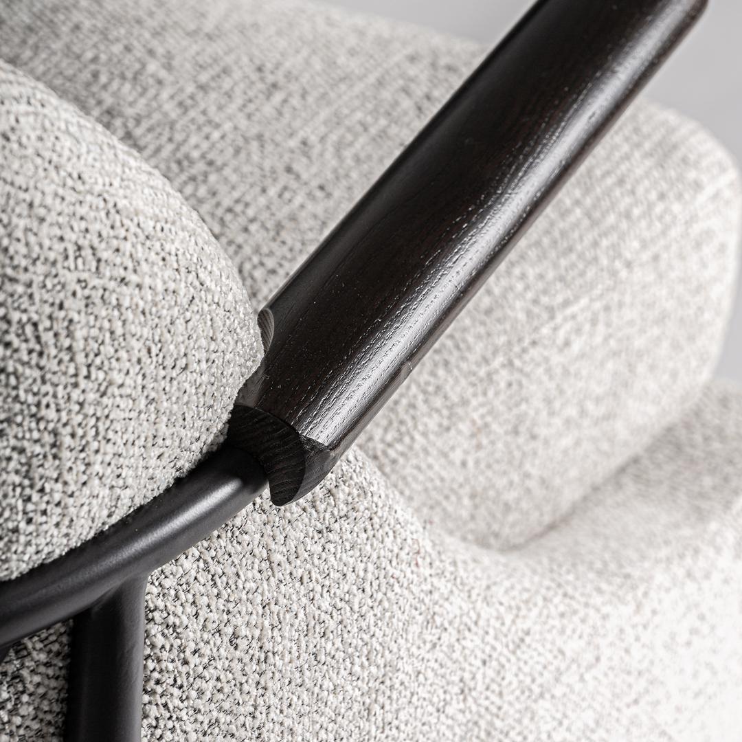 Вдохновленный скандинавским дизайном, Herzele сочетает в себе сдержанную элегантность и мягкость. Контраст между светло-серой обивкой и черным металлическим каркасом создает идеальный баланс для спокойных, но в то же время визуально эффектных интерьеров. Ширина: 77 см, Глубина: 88 см, Высота: 81 см