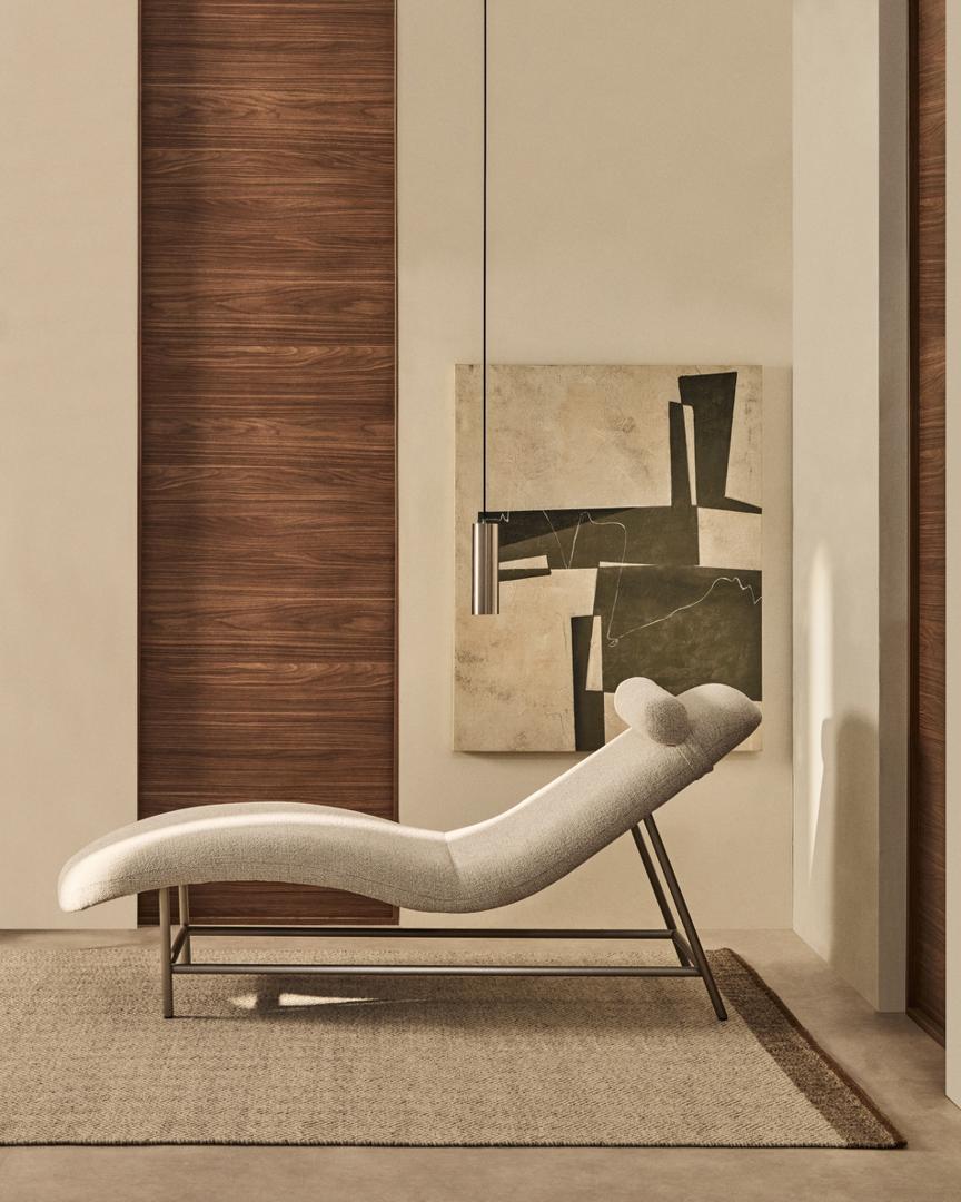 Кушетка La Forma (ех Julia Grup) Кушетка Osla из бежевого шенилла с ножками из стали арт. 427203