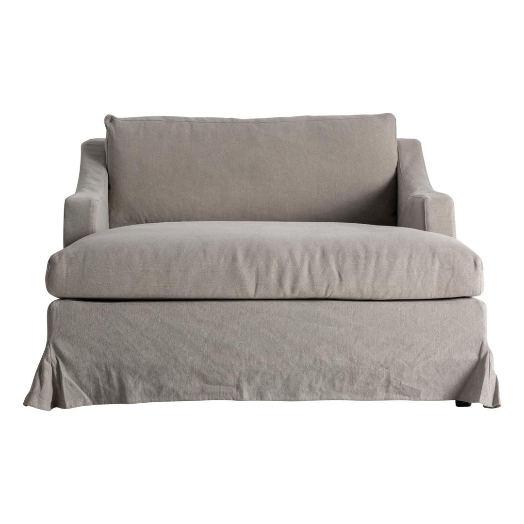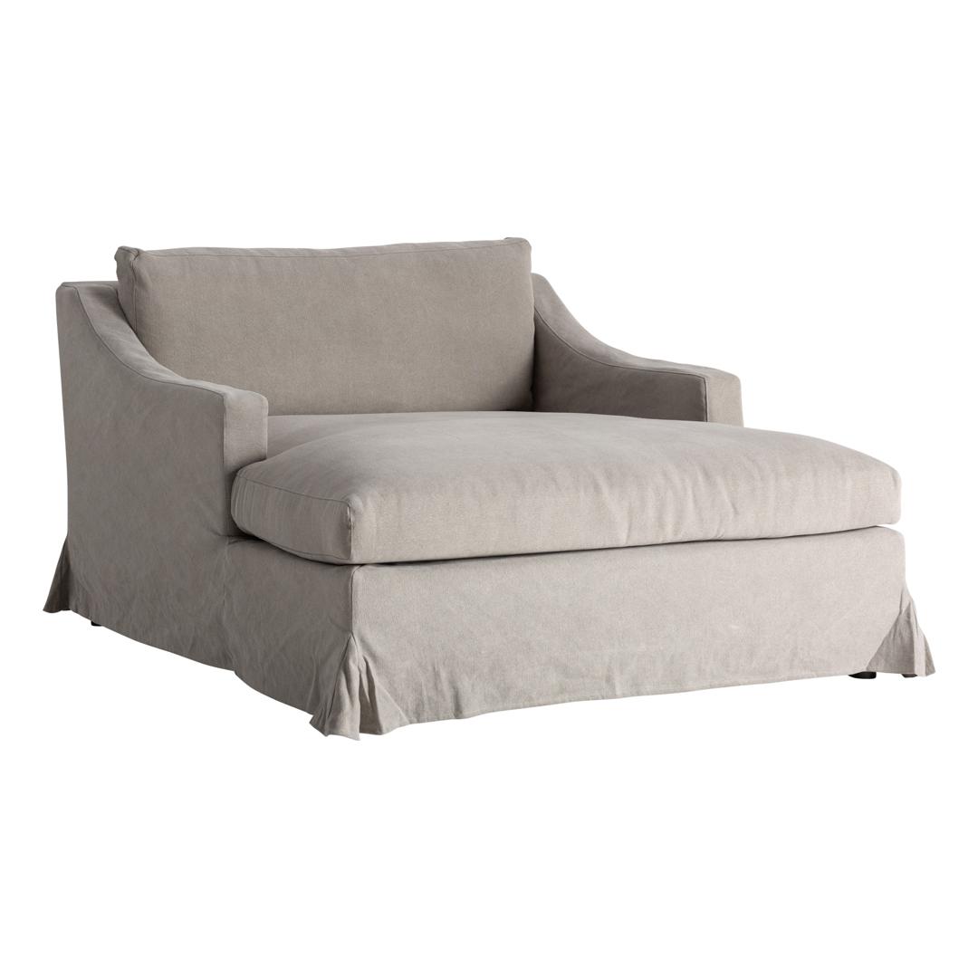 Шезлонг из бежевого льна в сочетании с хлопком и поролоном. Ширина: 130 см, Глубина: 172 см, Высота: 90 см