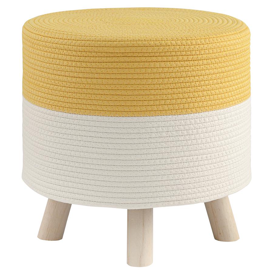 Пуф Devy станет заметным акцентом интерьера благодаря интересному сочетанию фактур и оригинальному цветовому решению. Мебель имеет ножки из неокрашенной сосновой древесины и удобное сиденье из хлопковой ткани, что выигрышно подчеркивает элегантный дизайн в эко-стиле. Такое сочетание материалов гарантирует безопасную эксплуатацию, тактильный комфорт и долгий срок службы. Пуф может использоваться в качестве дополнительного места для сидения или как подставка для ног. Материалы: 20% полиэстер, 10% хлопок, 10% поролон, 40% фанера, 20% сосновая древесина. Диаметр: 40 см. Высота: 40 см. Цвет: бежевый/горчичный. Для удаления загрязнений можно использовать мягкую щетку или губку с мыльным раствором воды.