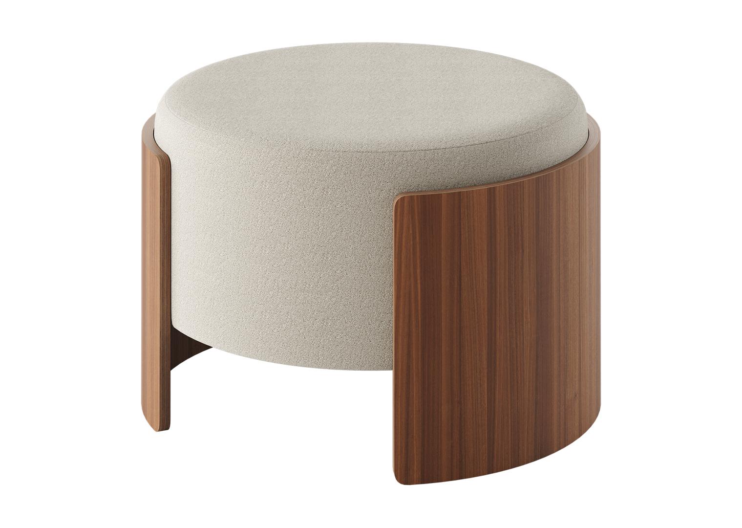 Пуф Lagom D 62 см Высота: 44 см Диаметр: 65.2 см Каркас: фанера, шпон ореха Обивка: Nantes мебельная ткань производства Бельгии