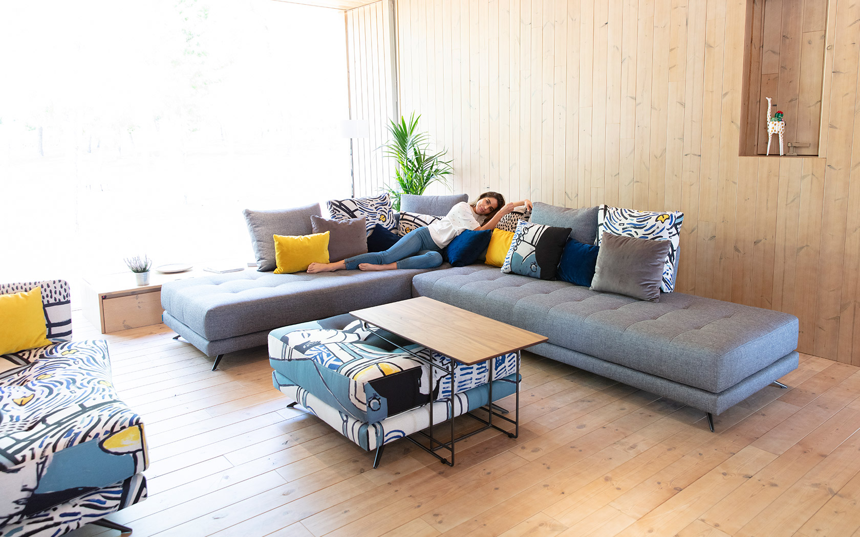 Pacific - это особенная модульная программа с потрясающей индивидуальностью. Он состоит из шести платформ разного размера, на которые вы можете в мгновение ока добавить или снять спинки с помощью действительно умной системы крепления. Таким образом, платформу для ног можно превратить в модуль или диван менее чем за минуту, без винты или инструменты. Вы можете переделать два независимых обычных дивана в современный раскладывающийся с двух сторон шезлонг. В дополнение к различным размерам прямоугольных платформ, эта модель имеет изогнутую деталь, которая позволяет нам создать самый удобный You & Me, привлекательный шезлонг или элегантный изогнутый диван, очень оригинальный и уютный. Благодаря большой глубине, Pacific позволяет вам играть с различными подушками, подходящими для любой позиции и ситуации.
