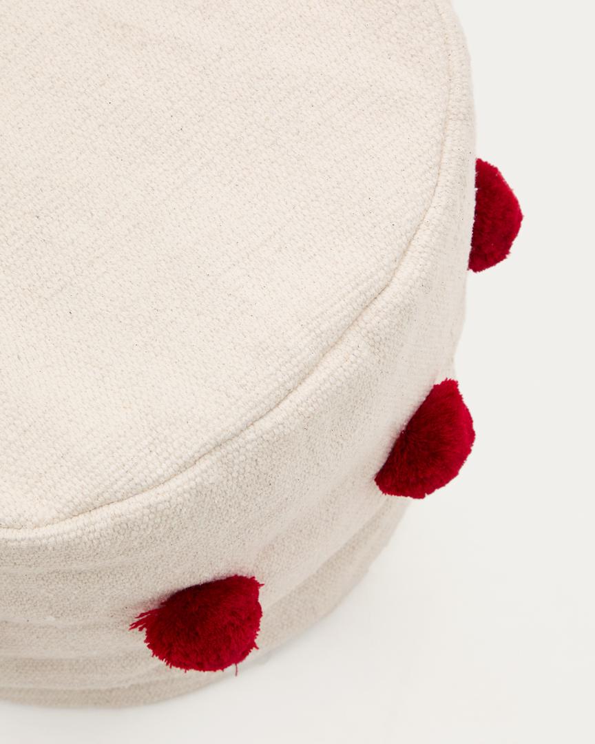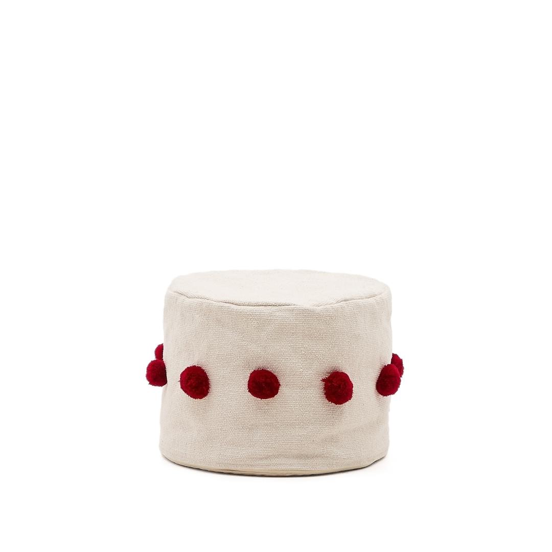Пуф La Forma (ех Julia Grup) Пуф Manua бежевый хлопковый с красными кисточками, Ø 40 см арт. 210806