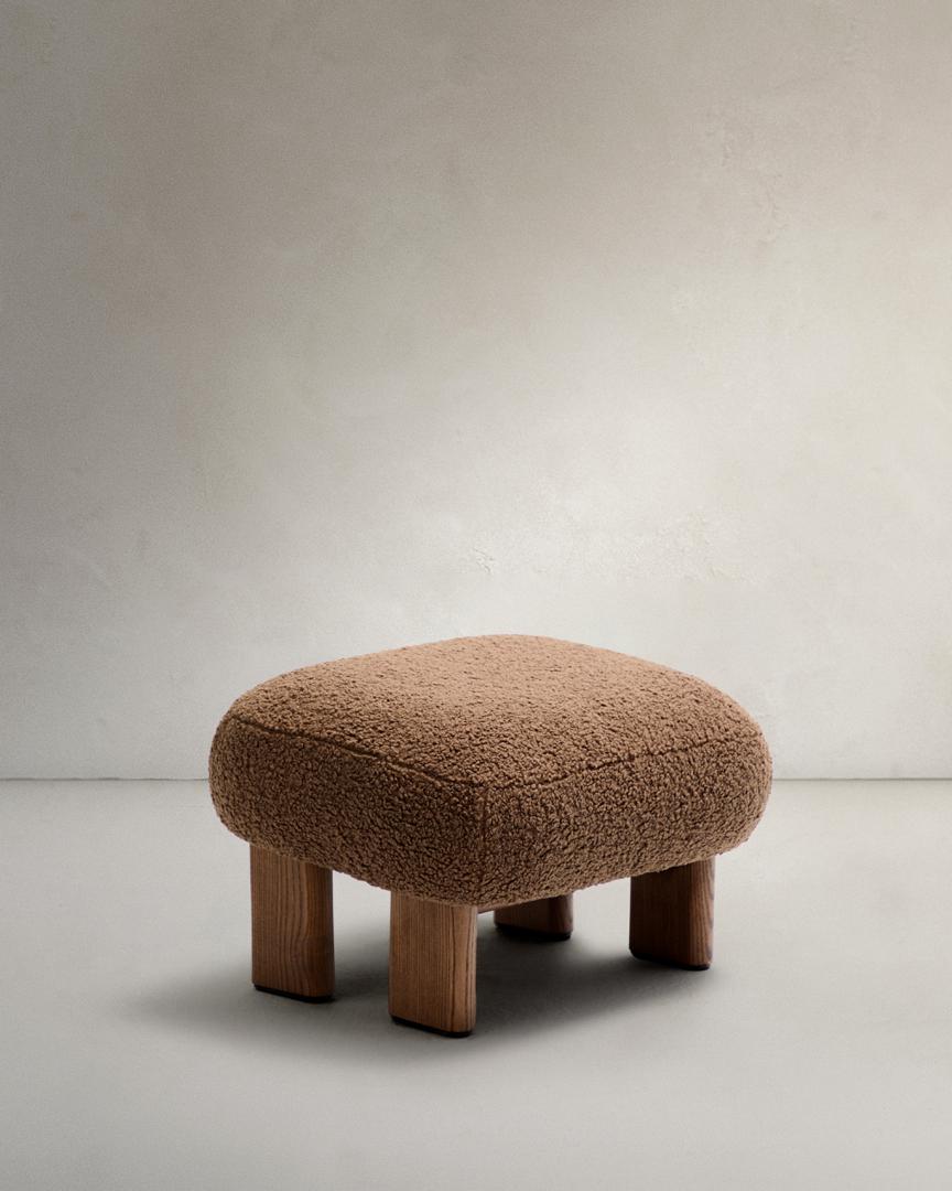 Пуф La Forma (ех Julia Grup) Пуф Cabana Taupe Boucle с ножками в отделке орех 65x55,4 арт. 205469