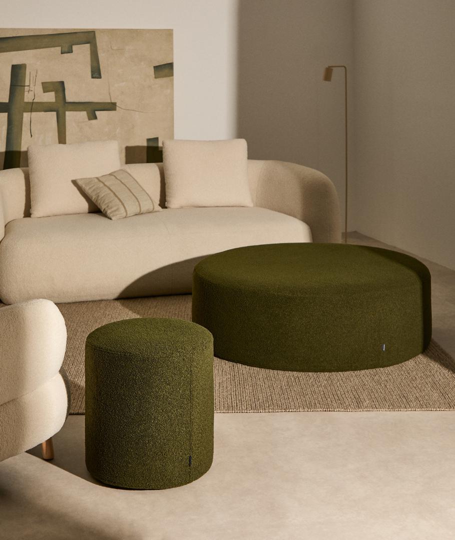 Kaeli преобразит ваш дом с помощью ткани букле из переработанного полиэстера. Доступная в 4 размерах, она обеспечивает комфорт и подходит для любой комнаты. Созданная для релаксации, коллекция Kaeli является неотъемлемой частью вашего благополучия.