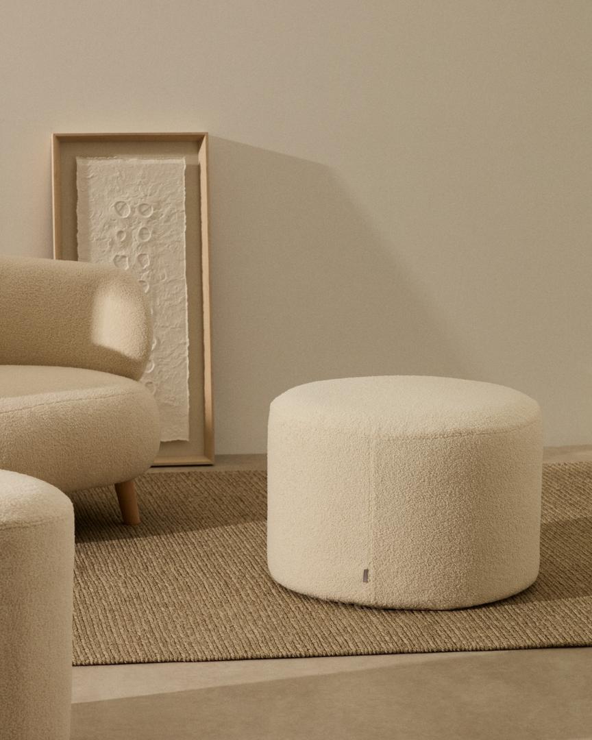 Пуф La Forma (ех Julia Grup) Kaeli Пуф для ног со съемным чехлом из экрю букле Ø 60 арт. 212328