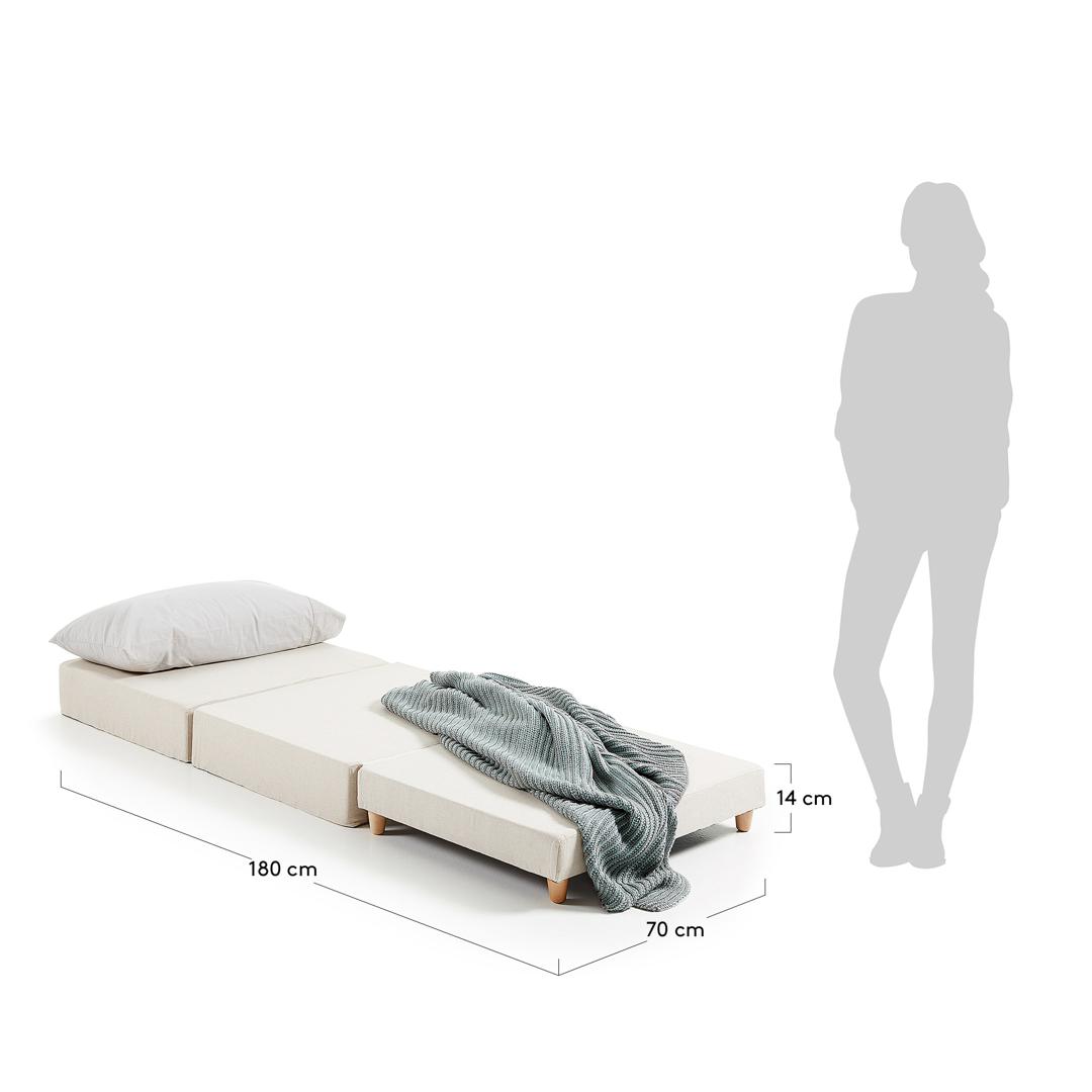 Пуф Lizzie размером 60 x 180 см в разложенном виде с ножками из бука разработан дизайнером Kave Home Оскаром Доллом. Он обит бежевым с использованием 100% натуральной хлопковой ткани экологически чистого производственного процесса. Он имеет вневременной дизайн, который вписывается в традиционные и современные пространства для вас или ваших гостей. Кроме того, крышка полностью снимается, поэтому вы всегда можете быть уверены, что она всегда безупречна. Это также машинная стирка. Просто расслабься.