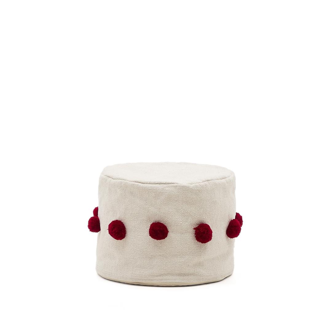 Пуф La Forma (ех Julia Grup) Пуф Manua бежевый хлопковый с красными кисточками, Ø 40 см арт. 210806