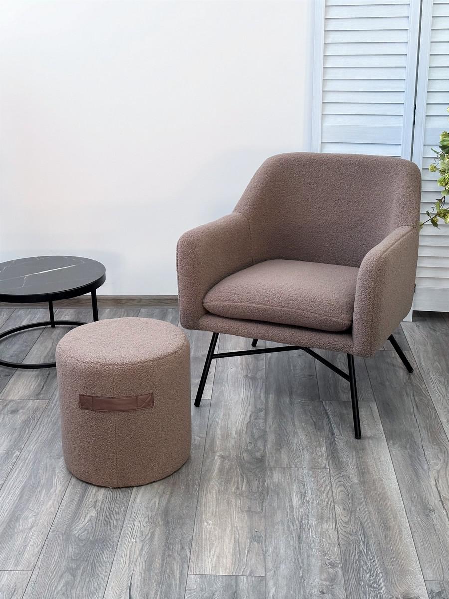 Пуф М-СИТИ Пуф для гостиной ХАРТА (HARTA) цвет NINI-02 Тауп, барашек / TKS-03 темно-коричневый, экокожа арт. 629M04979