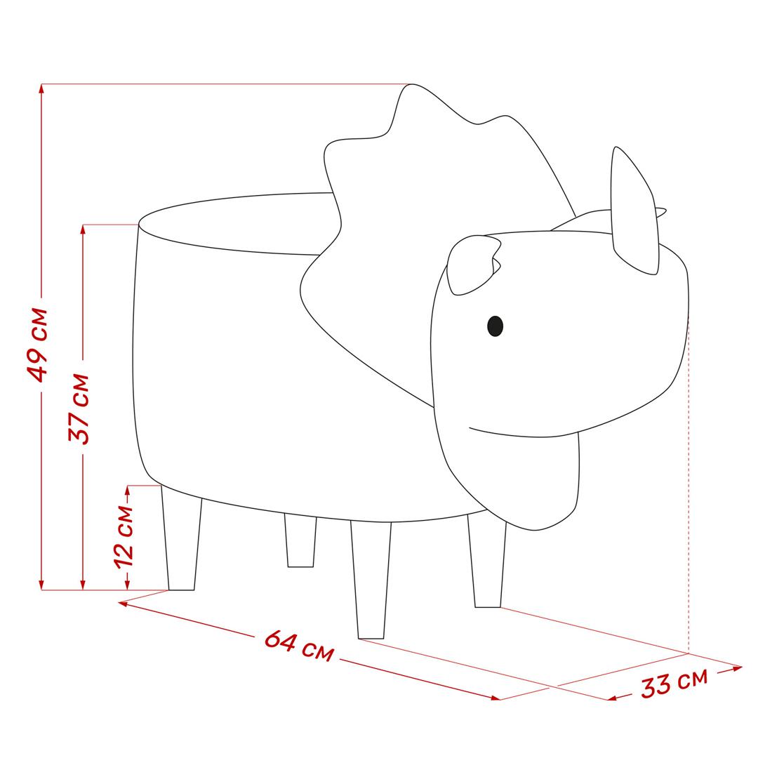 Хотите создать дома атмосферу "Парка Юрского периода"? Очаровательный и невероятно милый пуфик "Динозавр" станет ярким и запоминающимся предметом вашего интерьера. Мягкий и такой забавный динозаврик вот-вот оживет! Разместите его в детской комнате и у вашего ребенка появится замечательный друг! Крепкий и устойчивый пуфик служит и арт-объектом, и дополнительным местом для размещения гостей. Благодаря качественным, неприхотливым в уходе материалам пуф будет служить и радовать вас и ваших близких долгое время.
