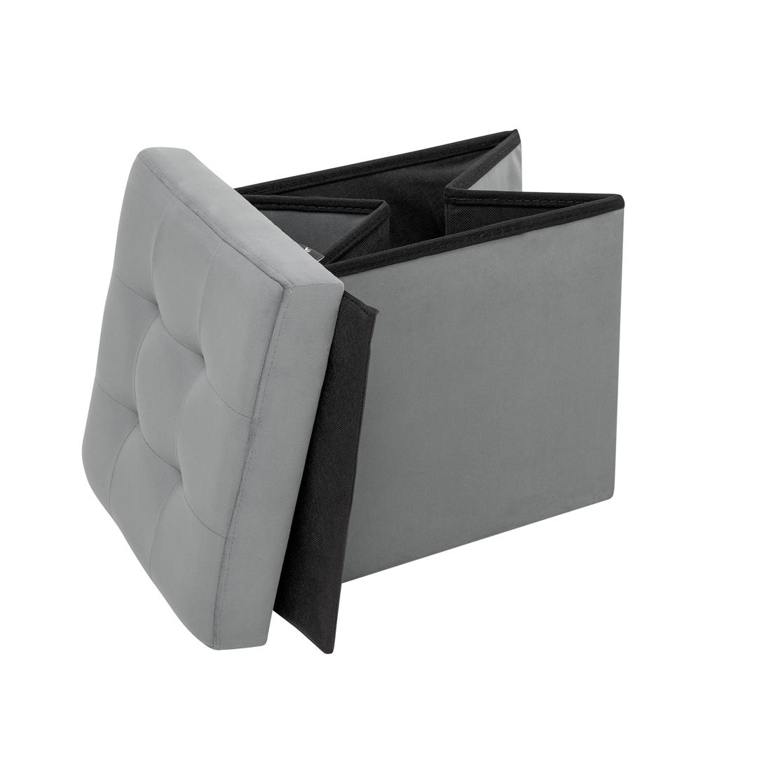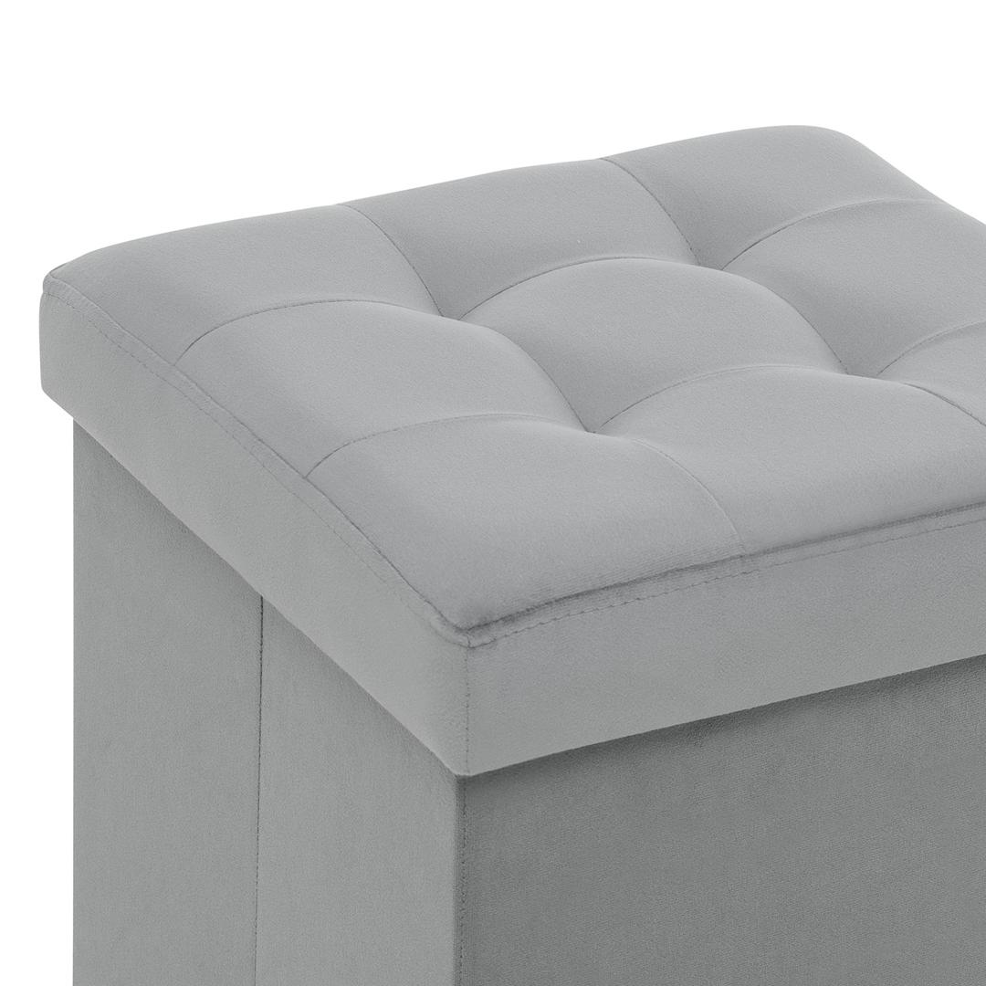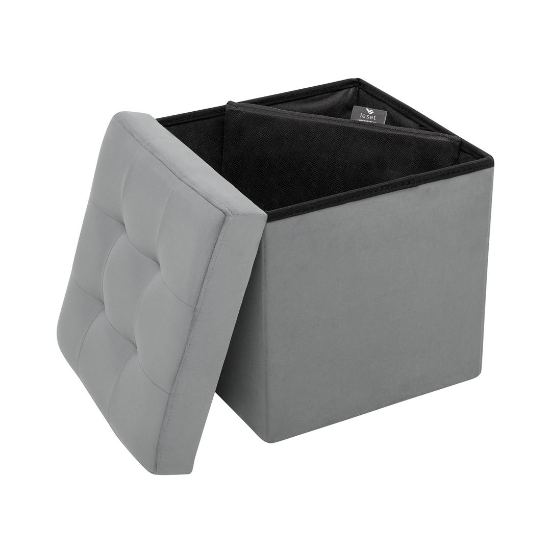 Пуф с ящиком для хранения объемом 40 л и обивкой из мебельной ткани велюр – идеальный элемент мебели для прихожей, детской комнаты или спальни. Квадратный мягкий пуфик Плуто разработан по требованиям комфорта, износостойкости и функциональности. Пуф в прихожую удобен: сидя на нем удобно переобуваться, внутри пуфа с ящиком можно хранить обувь и тапочки. Пуфики Плуто легко складываются, экономит пространство, складной пуфик легко перемещать, конструкция собирается за 10 секунд. Крышка пуфа декорирована стяжкой. Если у вас маленькая прихожая, мебель Leset выручит! Пуфы Плуто имеют прочный деревянный каркас, выдерживают до 100 кг. Для обтяжки пуфика для прихожей мы используем обивку ткань велюр, приятна тактильно и устойчива к износу. Пуфик с ящиком для хранения доступен в 5-и цветах. Модель универсальна, отлично впишется в любой интерьер, уместна как пуфик банкетка в спальню. Нужен пуф круглый на опорах мебельных из дерева? Смотрите другие пуфы и банкетки в нашем каталоге.