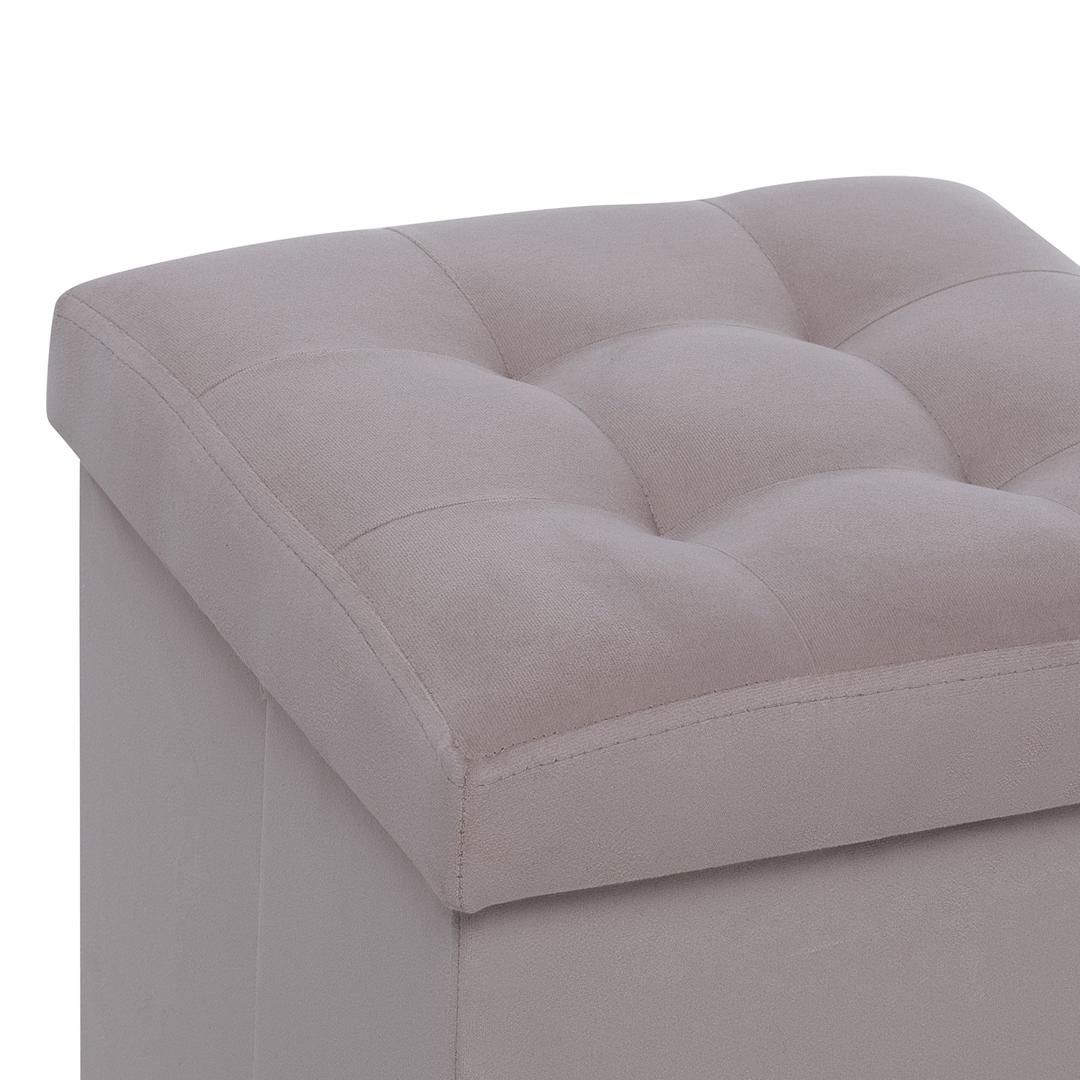 Пуф с ящиком для хранения объемом 40 л и обивкой из мебельной ткани велюр – идеальный элемент мебели для прихожей, детской комнаты или спальни. Квадратный мягкий пуфик Плуто разработан по требованиям комфорта, износостойкости и функциональности. Пуф в прихожую удобен: сидя на нем удобно переобуваться, внутри пуфа с ящиком можно хранить обувь и тапочки. Пуфики Плуто легко складываются, экономит пространство, складной пуфик легко перемещать, конструкция собирается за 10 секунд. Крышка пуфа декорирована стяжкой. Если у вас маленькая прихожая, мебель Leset выручит! Пуфы Плуто имеют прочный деревянный каркас, выдерживают до 100 кг. Для обтяжки пуфика для прихожей мы используем обивку ткань велюр, приятна тактильно и устойчива к износу. Пуфик с ящиком для хранения доступен в 5-и цветах. Модель универсальна, отлично впишется в любой интерьер, уместна как пуфик банкетка в спальню. Нужен пуф круглый на опорах мебельных из дерева? Смотрите другие пуфы и банкетки в нашем каталоге.