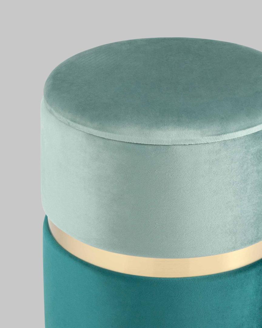 Пуф Кэрри с ящиком велюр бирюзовый с декоративным золотым ободком