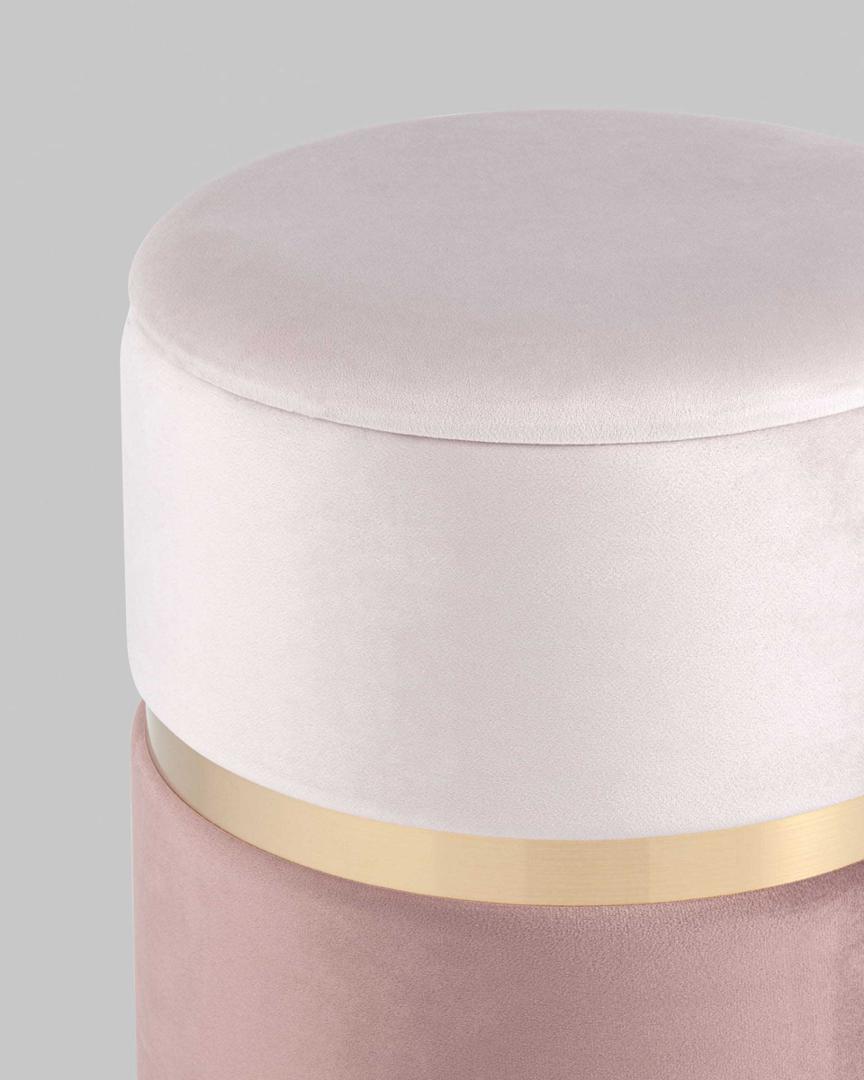 Пуф Кэрри с ящиком велюр розовый с декоративным золотым ободком