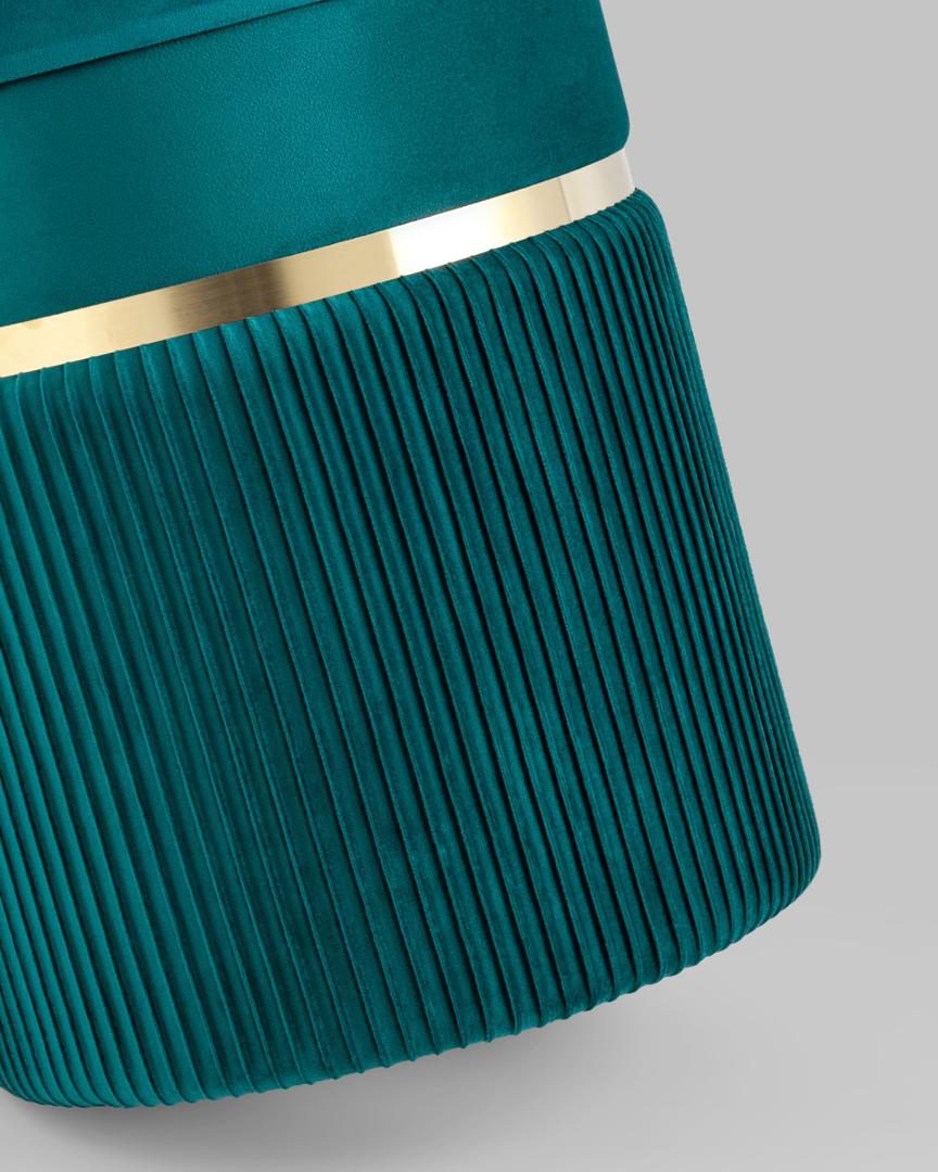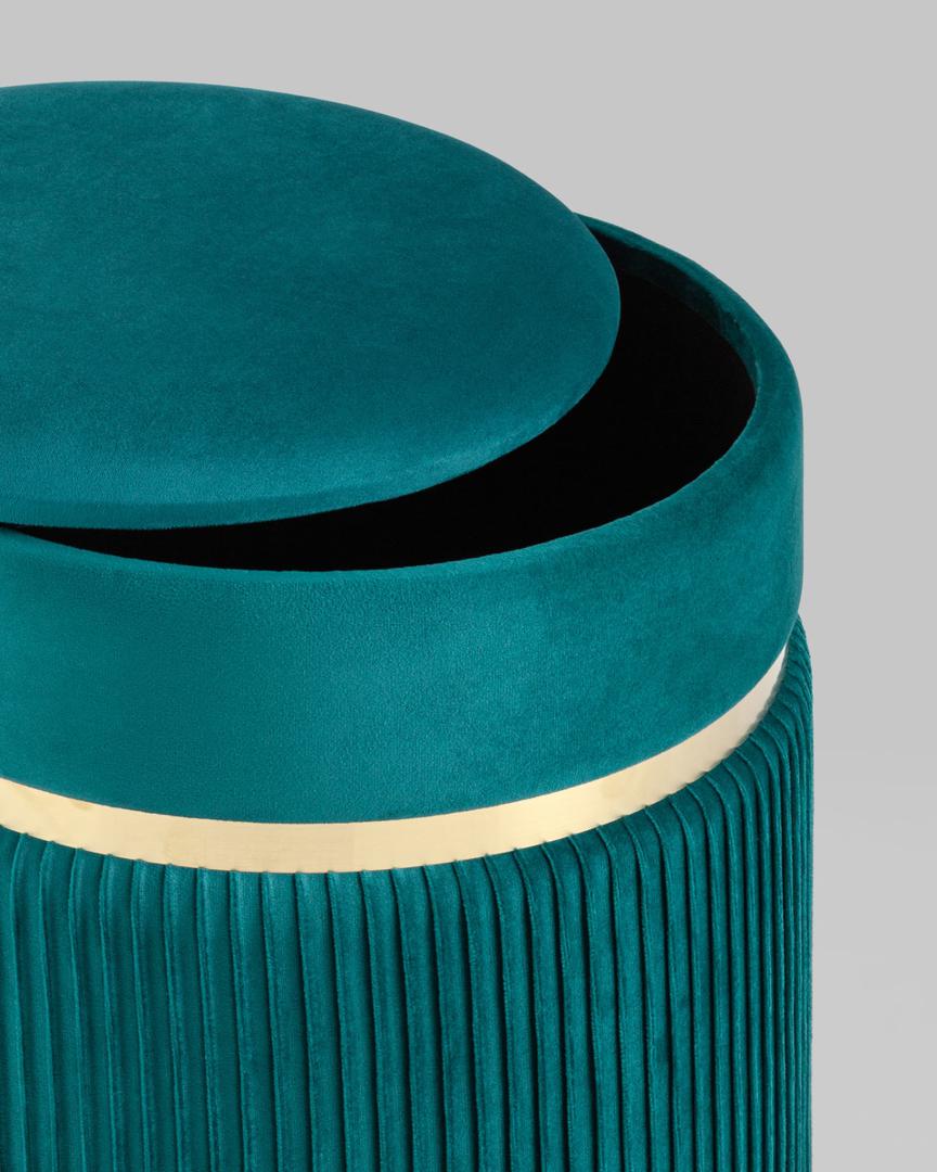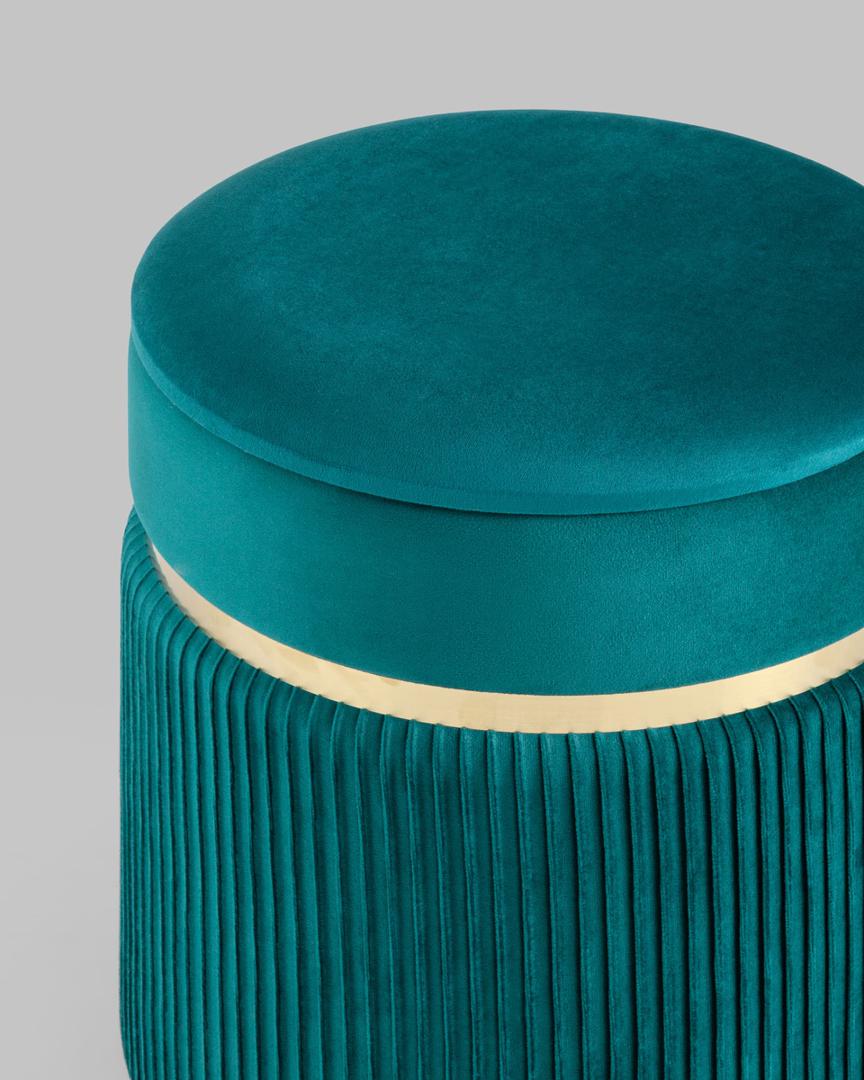 Пуф Миранда с ящиком велюр бирюзовый с декоративным золотым ободком