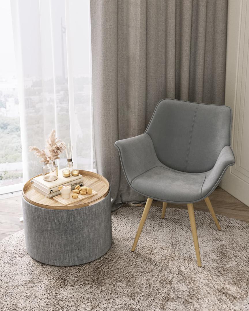 Пуф Stool Group Пуф-столик с ящиком Хюгге L рогожка серый арт. УТ000035341