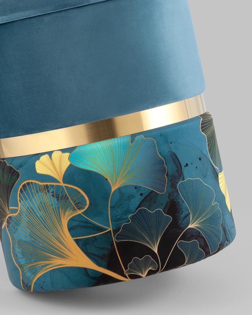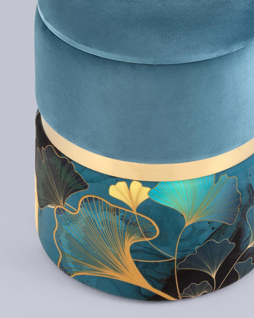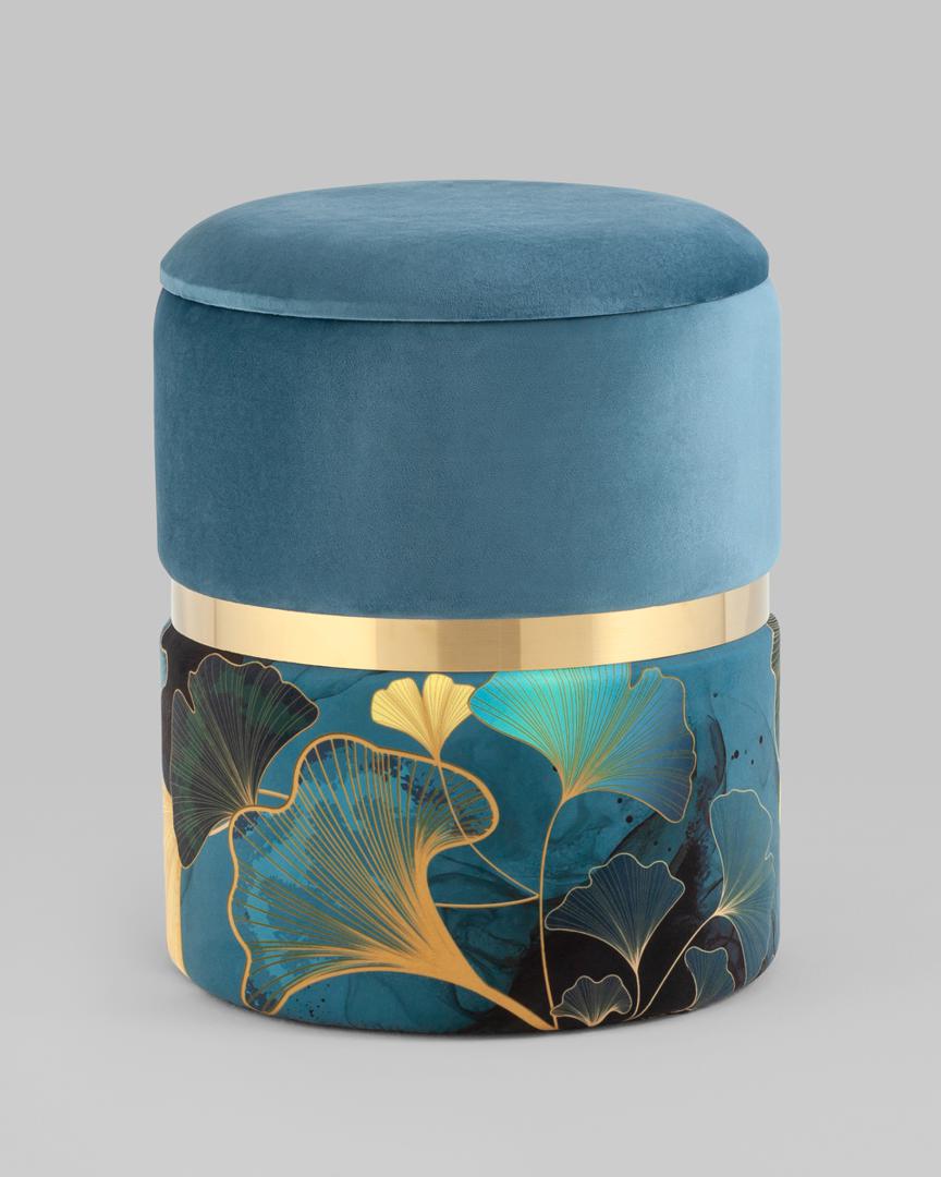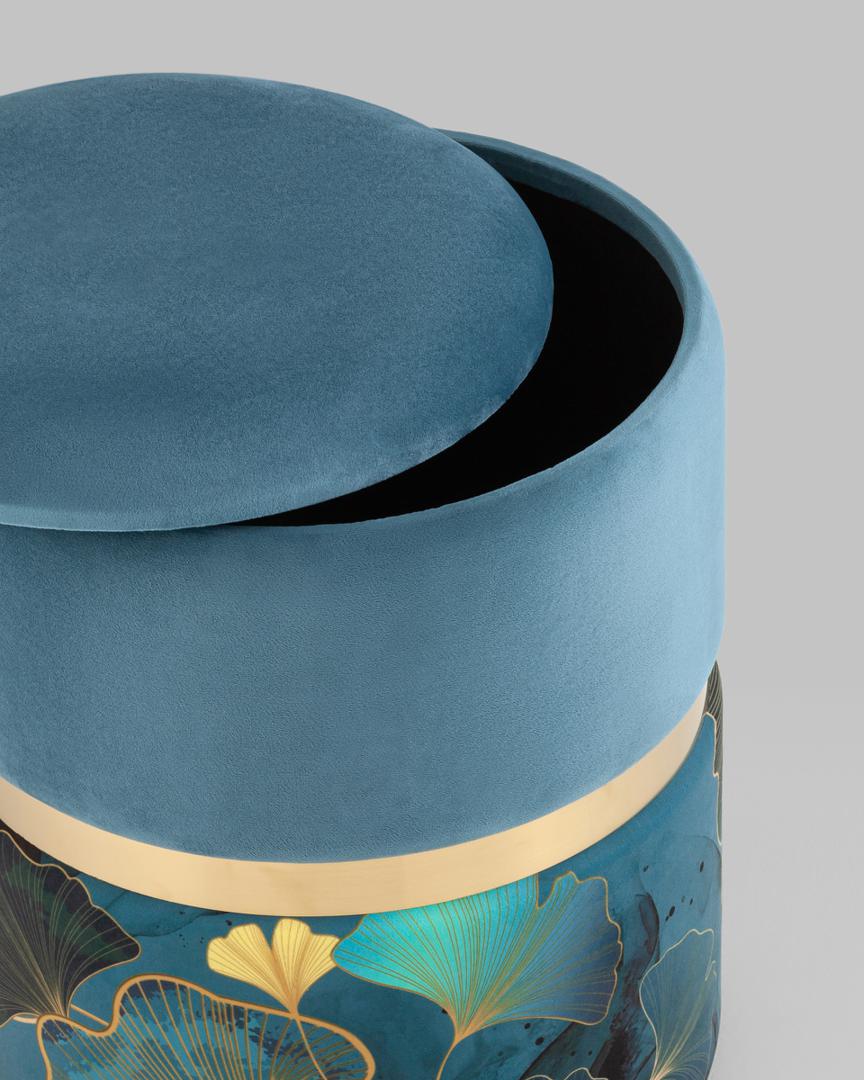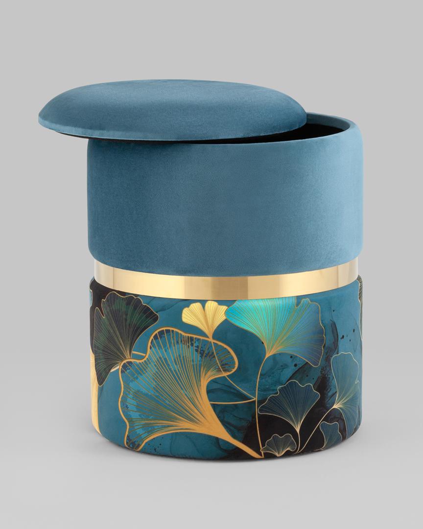 Пуф Кэрри с ящиком велюр Gingko с декоративным золотым ободком