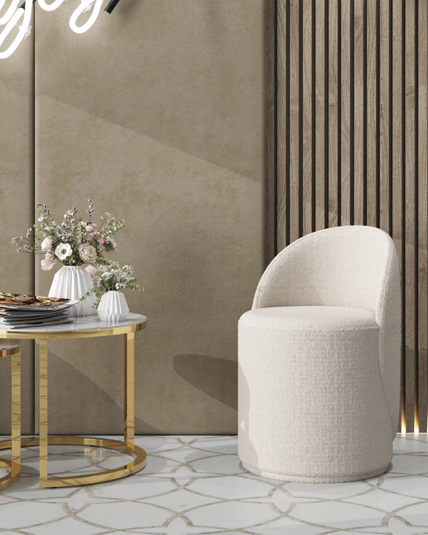 Пуф Loreen вращающийся ткань букле белого цвета