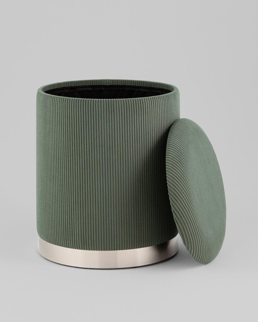 Пуф Эмили с ящиком серебро вельвет зелёный