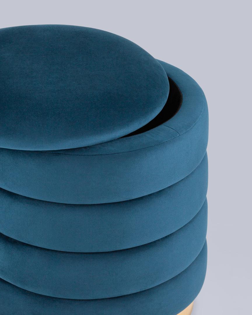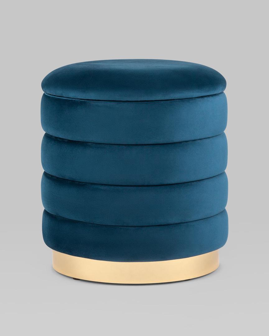 Пуф с ящиком Франсис велюр синий с декорированным основанием