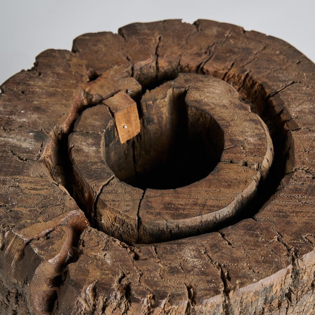 Пуф в этническом стиле, изготовленный из мангового дерева коричневого цвета с состаренной отделкой. Ширина: 25 см, Глубина: 25 см, Высота: 32 см