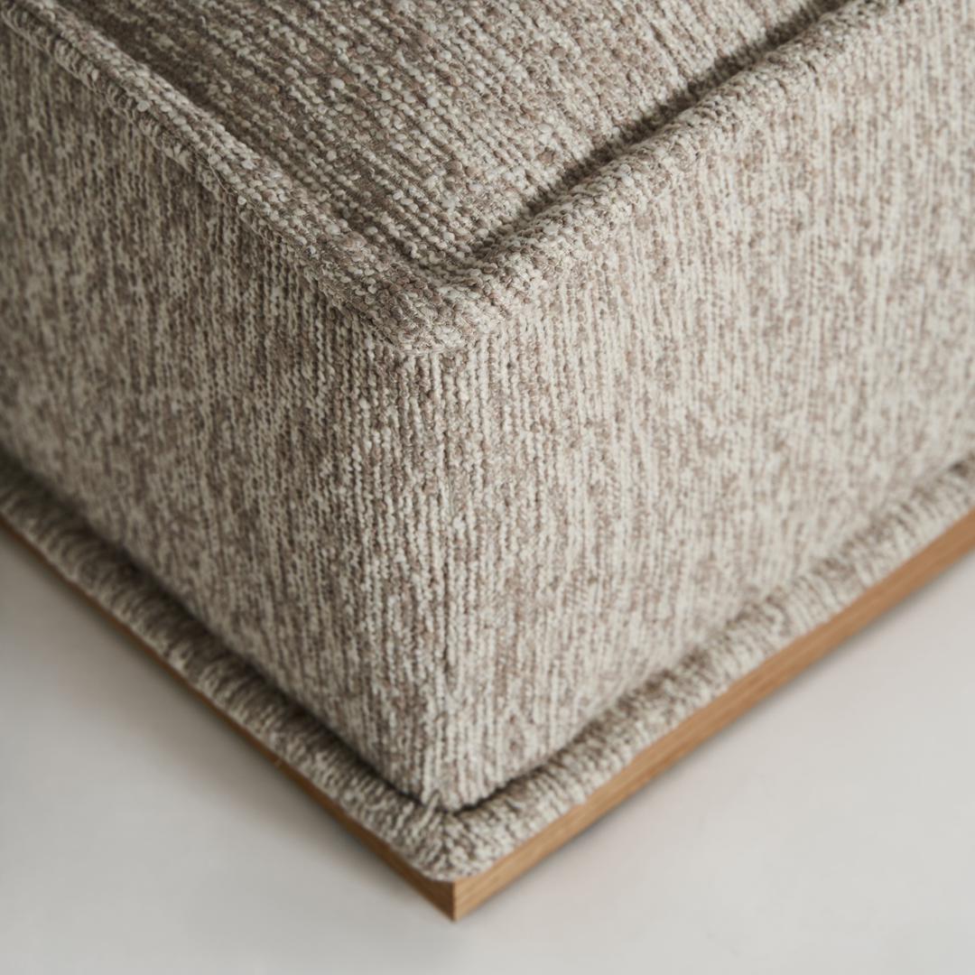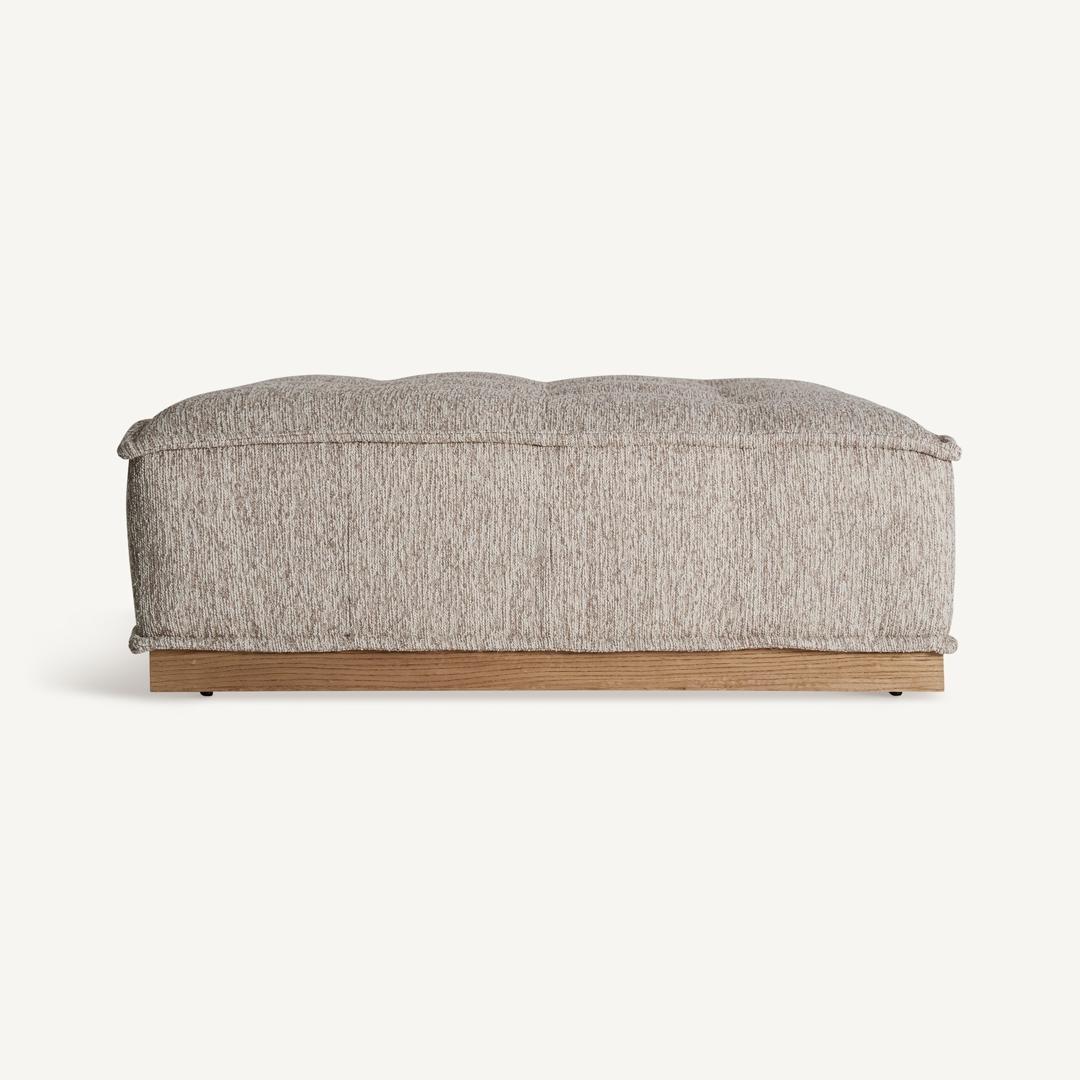 Современный пуф Vittel из бежевого полиэстера с пестрой отделкой в сочетании с коричневой сосной. Совместим с моделями: 34463, 34464. Ширина: 120 см, Глубина: 120 см, Высота: 42 см