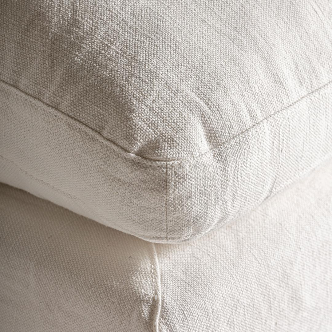 Подставка для ног Agde белого цвета в стиле арт-деко. Изготовлен из льна в сочетании с хлопком и поролоном. Изделие съемное, чехол съемный. Совместим с: 35112,35113,35111.